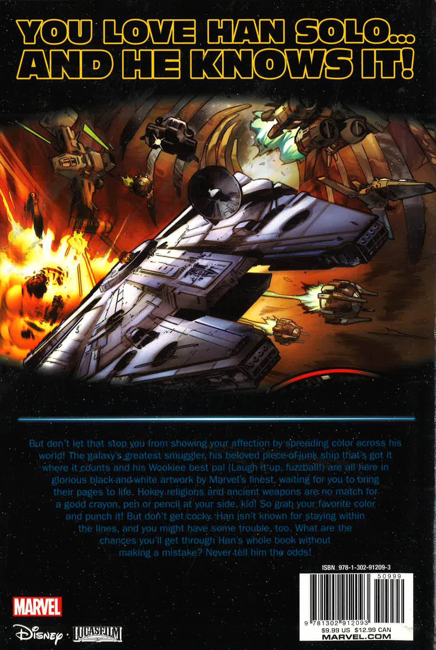 You love Han Solo...and he knows! But don't let that stop you from showing your aff ection by spreading color across his world! The galaxy's greatest smuggler, his beloved piece-of-junk ship that's got it where it counts, and just maybe his best Wookiee pal (Laugh it up, fuzzball!) are all here in glorious black-and-white artwork by Marvel's fi nest, just waiting for you to bring their pages to life. But what are you gonna use? Hokey religions and ancient weapons are no match for a good crayon, pen or pencil at your side, kid! So grab your favorite color, and punch it! But don't get cocky. Han isn't known for staying within the lines, and you might have some trouble, too. What are the chances that you'll get through Han's whole book without making a mistake? Never tell him the odds!