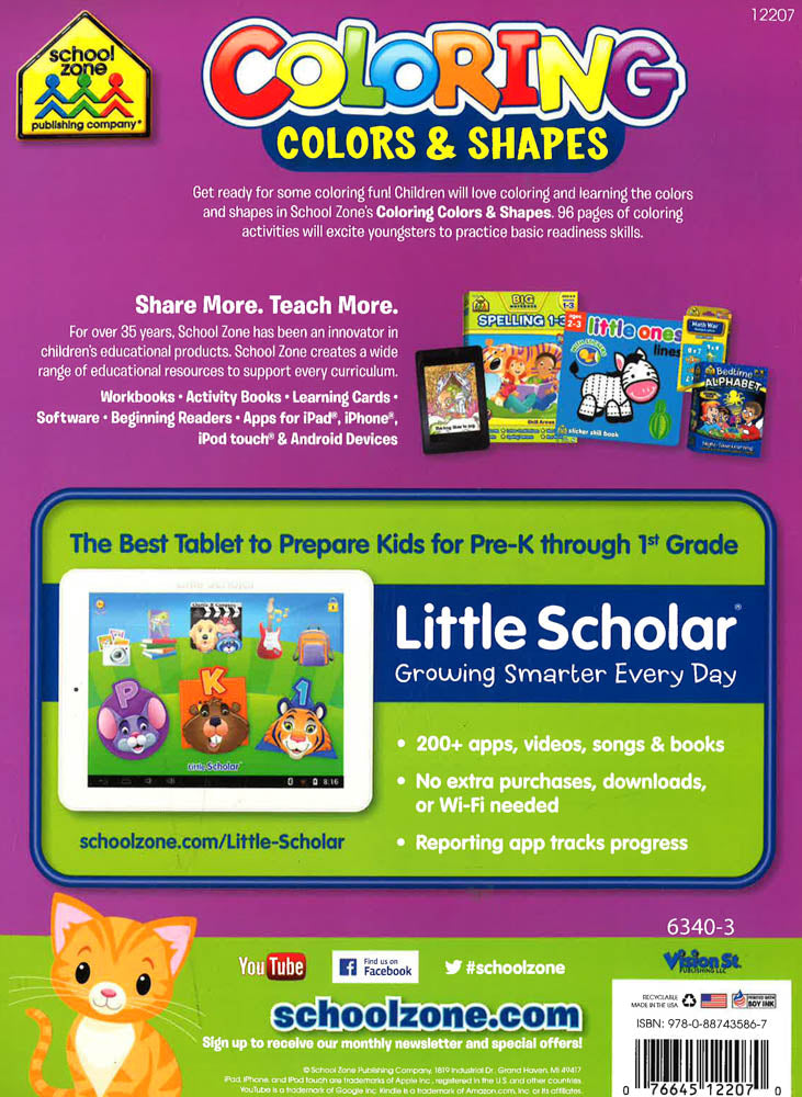 Get ready for some coloring fun! Children will love coloring & learning the colors in School Zone's Coloring Colors & Shapes. The 48x2-sided pages of coloring activities will excite youngsters to practice basic readiness skills.