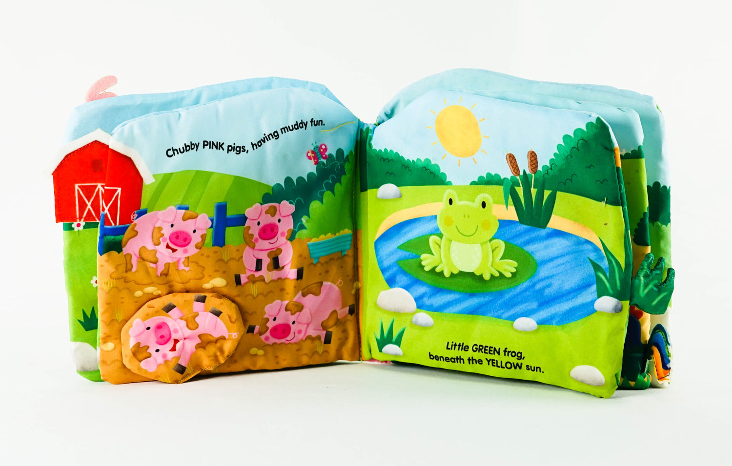 Children will love to visit Farmer John's farm and look for colors in this adorable cloth book. Playful rhymes, lift-the-flaps, crinkle sounds, and more make recognizing colors tons f fun. Touch-and-feel fabric extends off the pages to complete this delightful interactive book!