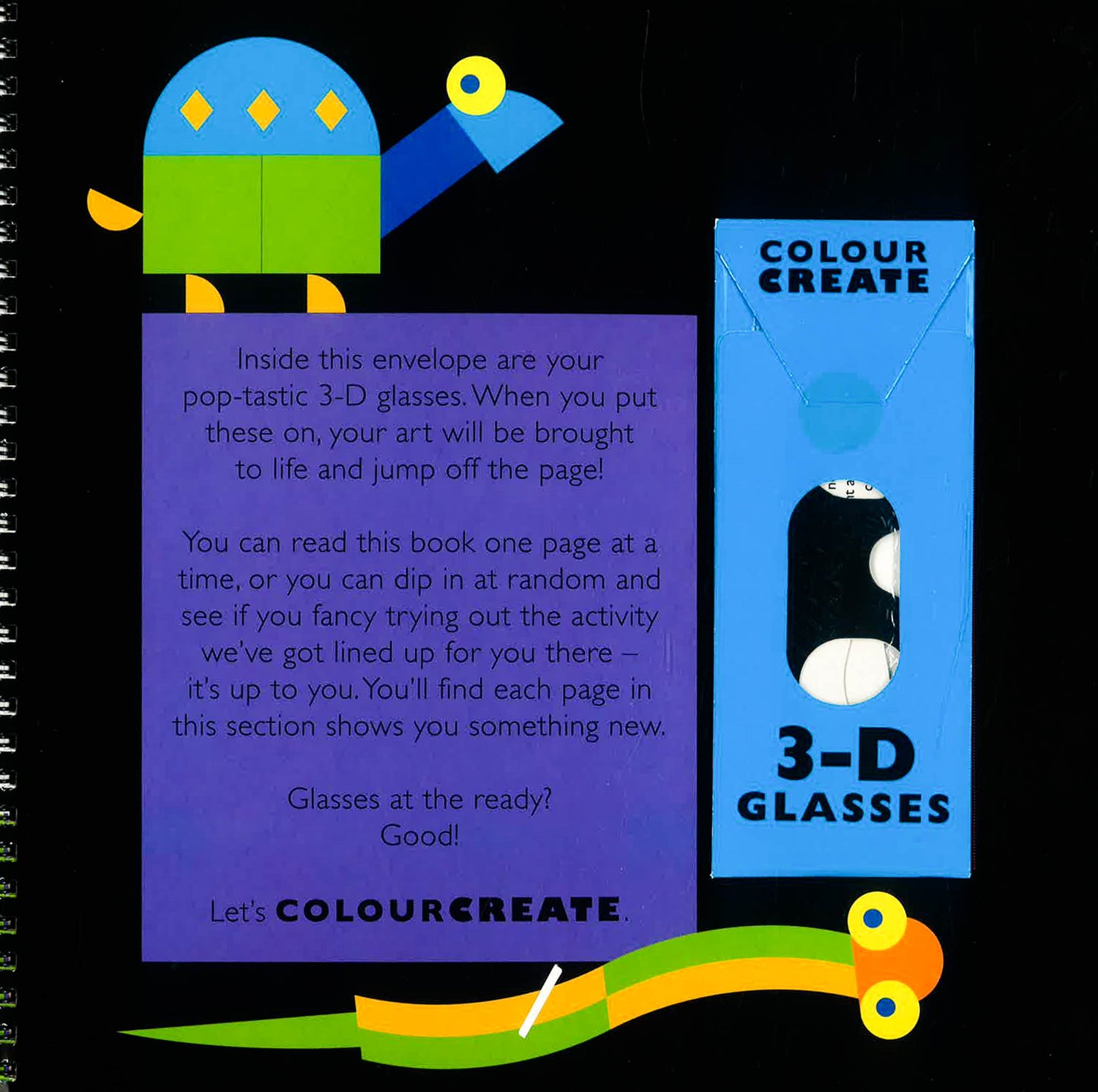 ColourCreate your own zany animals with this innovative activity book. Get started with a how-to section that's bursting with ideas and tricks of the trade, then use the pull-out activity cards and brightly coloured stickers to make your own wacky animals from scratch. When your artwork is complete, use the 3-D glasses to see it spring to life. There are hours of fun to be had with this comprehensive pack. Ages 5+