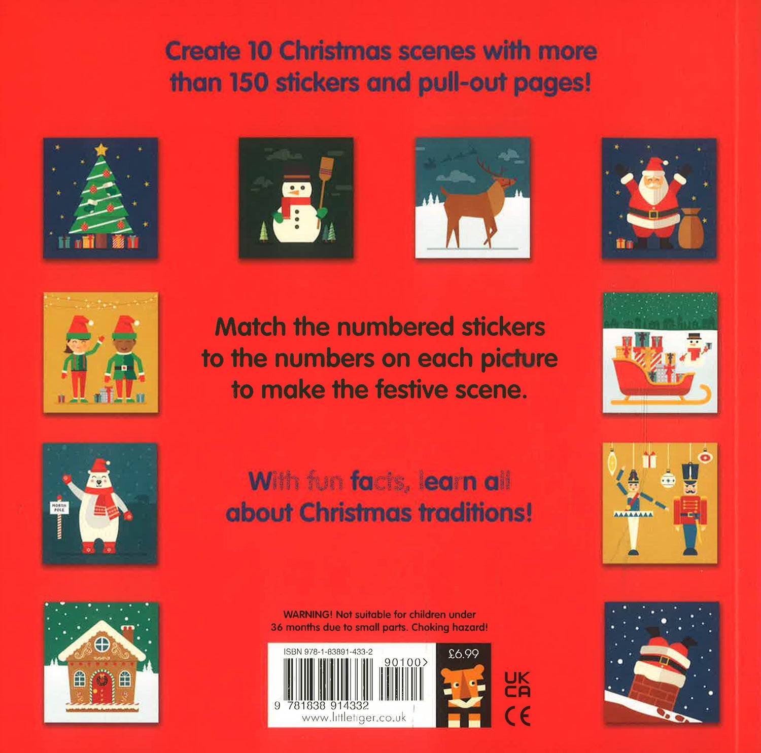 Create ten Christmas scenes with more than 150 stickers and pull-out pages! Little ones will love matching the numbered stickers to the numbers on each picture to create their own festive scene. With fun facts on the back of every page, learn all about Christmas traditions while you build your masterpiece. A festive activity book for the holidays.