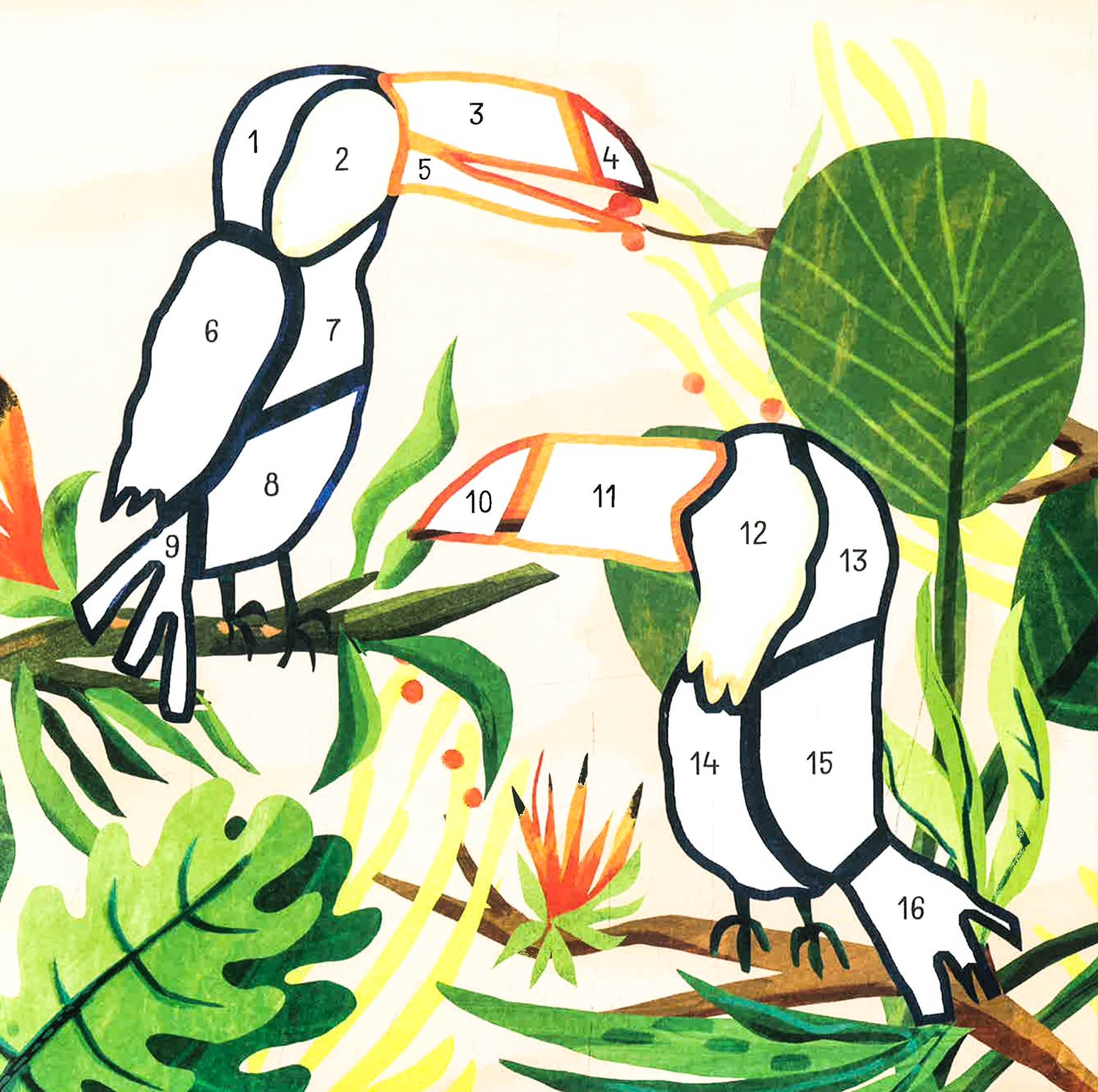 Explore the jungle with this immersive and interactive sticker-by-numbers book.