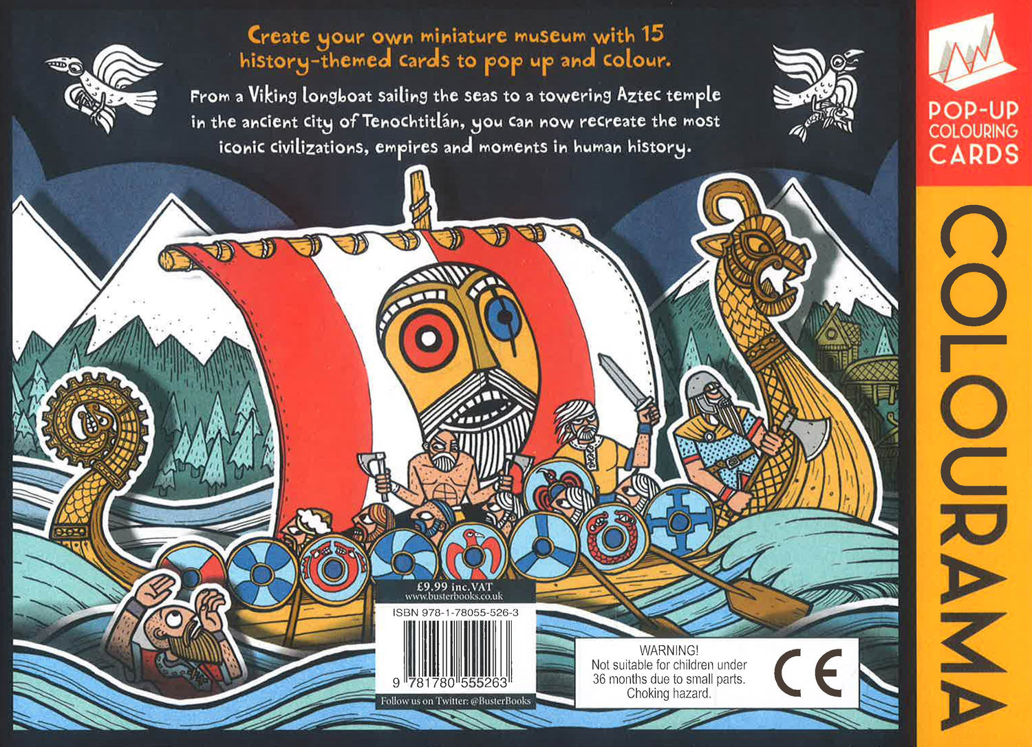 Each colouring card can be pulled out of the pad. Characters and objects within each scene can then be folded up to create a 3D effect. There are fun facts on the back of each page, so children can learn all about the iconic scenes and ancient civilizations they are colouring.