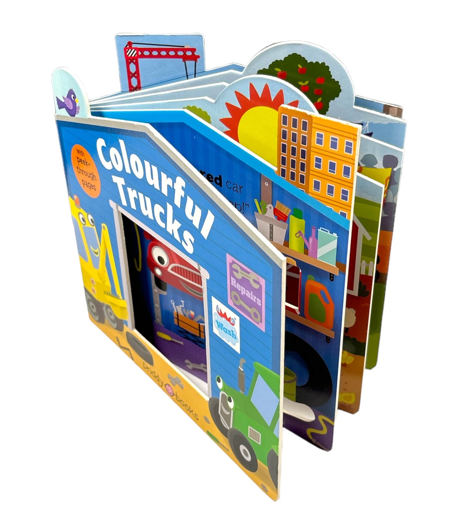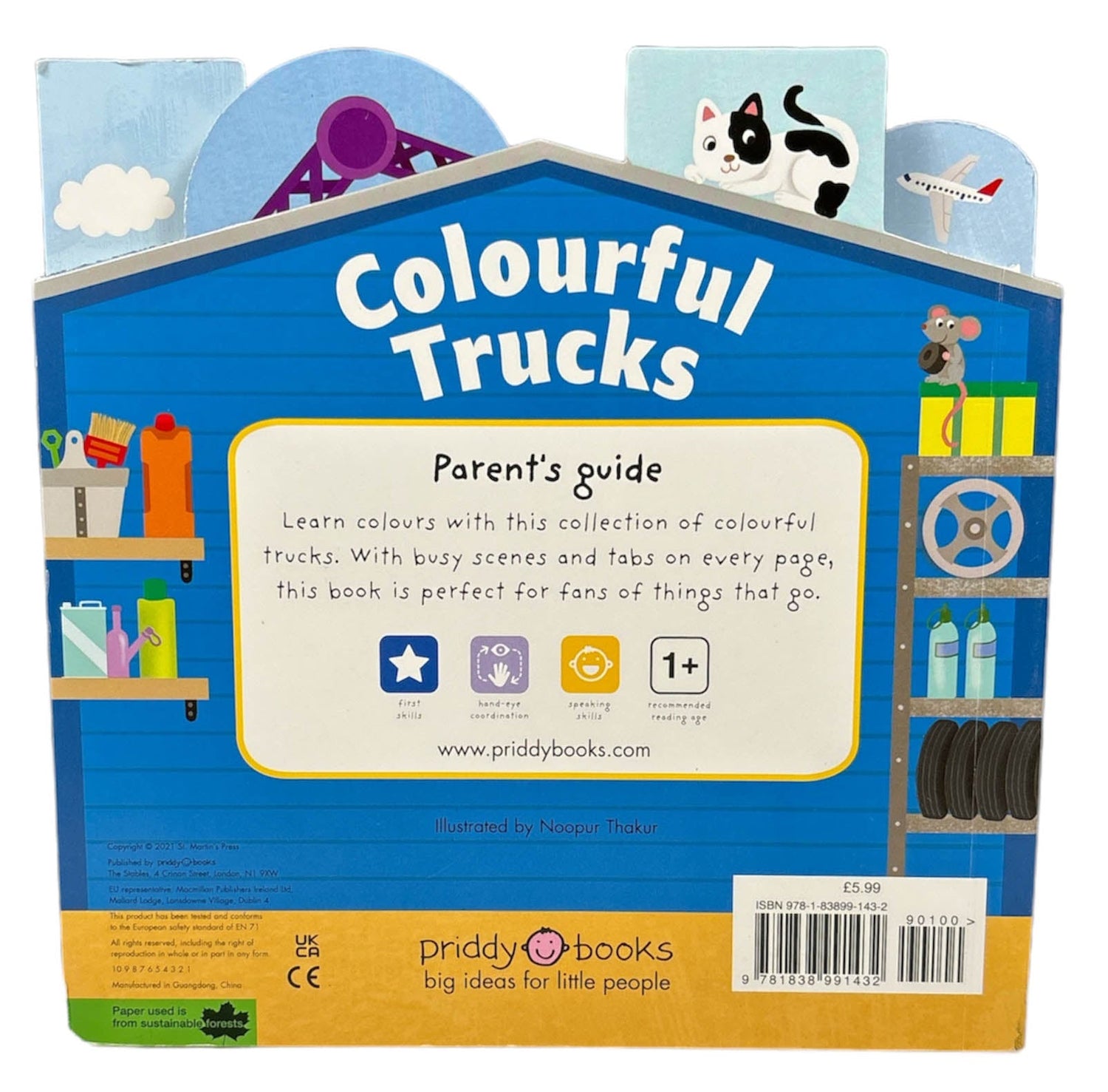 Roger Priddy's Tiny Tots Peep-Through: Colourful Trucks is the perfect first novelty book for children who love trucks, cars and tractors. Following on from Tiny Tots Peep-Through: 10 Fluffy Ducklings, this book includes peep-through die-cuts and tabs which have real pick-up appeal. Each page of this sturdy board book is shaped and cleverly layered to create a fun scene that introduces a different colour. The clever shaped tab format gives it gift value and makes learning fun, making it the perfect treat for babies.