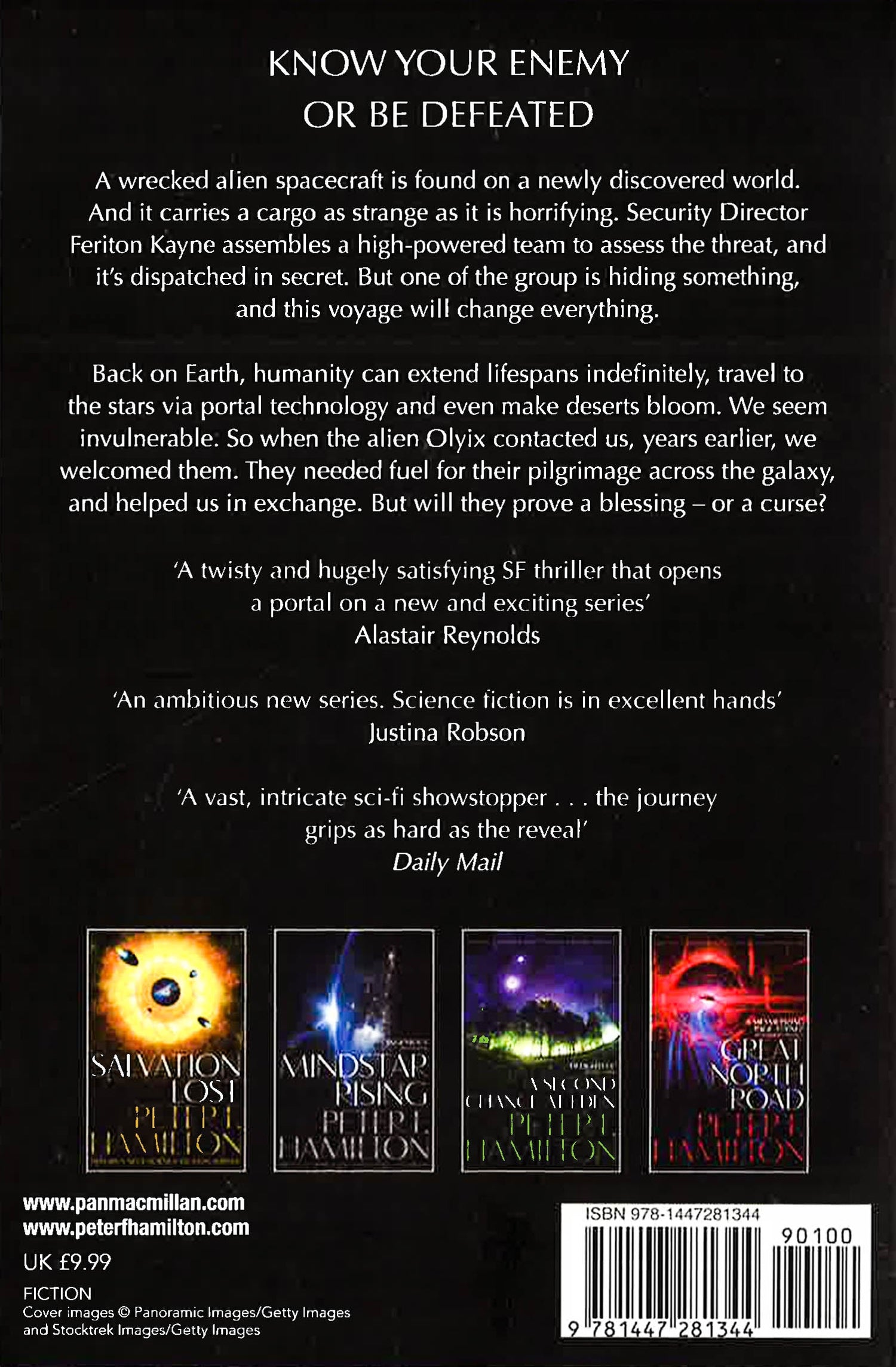 Salvation is the first title in a stunning science fiction trilogy, the Salvation Sequence, by Peter F. Hamilton.