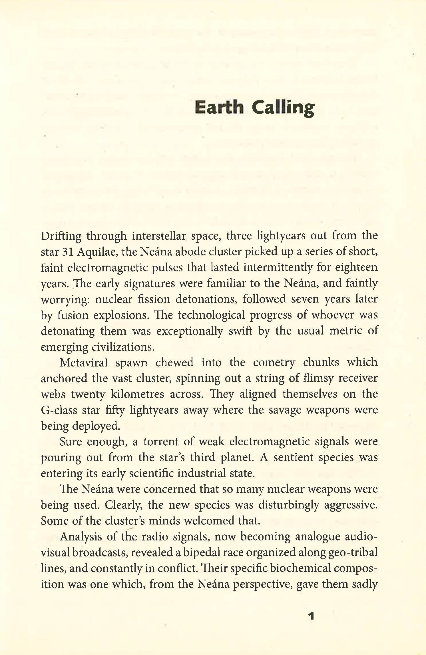Back on Earth, we can now make deserts bloom and extend lifespans indefinitely, so humanity seems invulnerable. We therefore welcomed the Olyix to Earth when they contacted us. They needed fuel for their pilgrimage across the galaxy – and in exchange they helped us advance our technology. But were the Olyix a blessing or a curse?