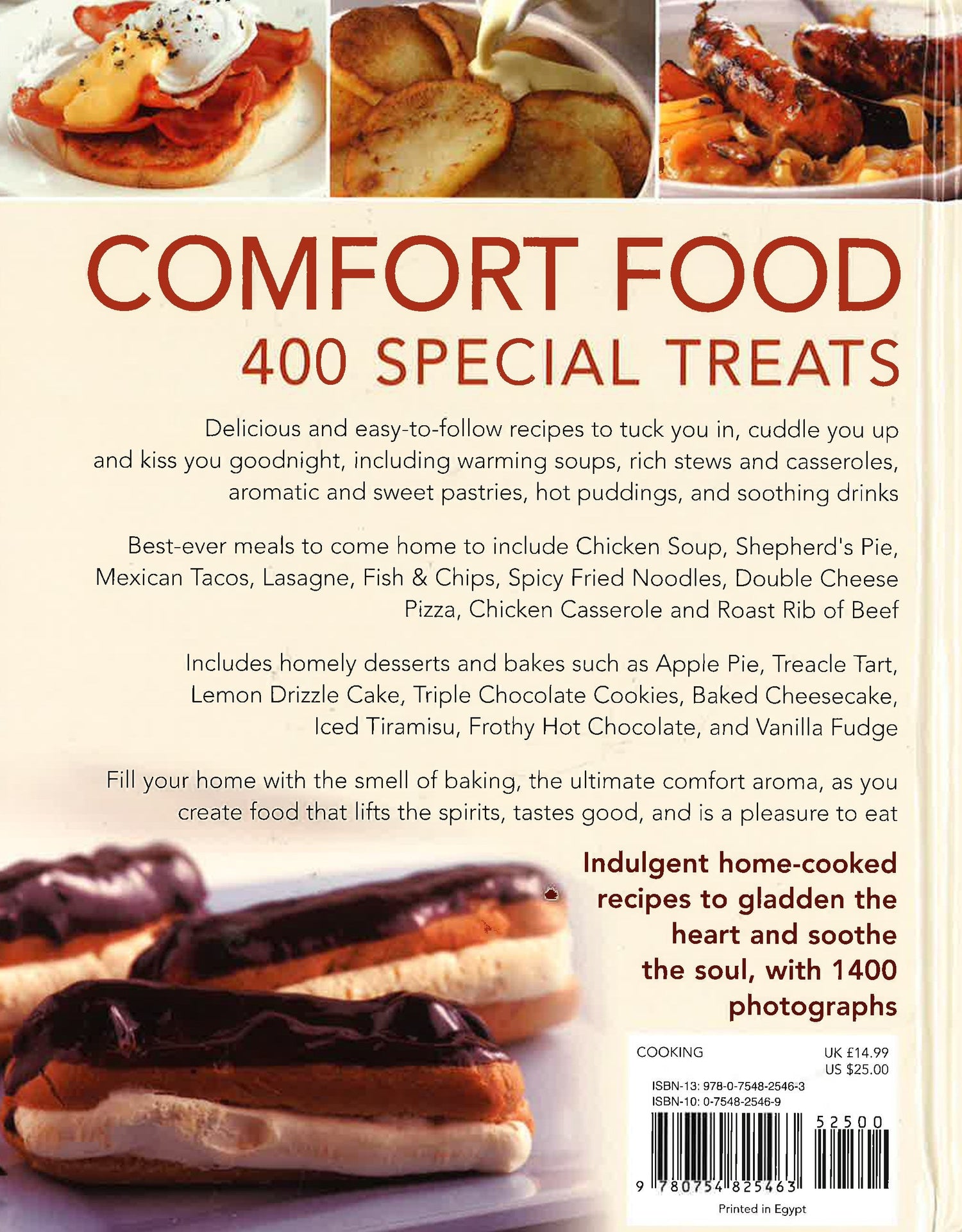 This title includes indulgent home-cooked recipes to gladden the heart and soothe the soul, with 1400 photographs. Delicious and easy-to-follow recipes to tuck you up, cuddle you and kiss you goodnight, including warming soups, rich stews and casseroles, aromatic and sweet pastries, hot puddings, and soothing drinks. Best-ever meals to come home to include Chicken Soup, Shepherd's Pie, Mexican Tacos, Lasagne, Fish & Chips, Steak and Kidney Pie, and Roast Rib of Beef. Includes homely desserts and bakes such as Apple Pie, Treacle Tart, Lemon Drizzle Cake, Soda Bread, Triple Chocolate Cookies, Cheesecake, Ice Cream, Apple Pie and Custard, Frothy Hot Chocolate, and Vanilla Fudge. Fill your home with the smell of baking, the ultimate comfort aroma, as you create food that lifts the spirits, tastes good, and is a pleasure to eat. Sausages and mashed potatoes, fried cheese sandwiches, apple pie and fresh cream - these are the kind of simple dishes that can truly be called comfort food, and here are over 400 delicious recipes designed to bring nourishment and contentment. Included are hearty soups, slow-simmering stews, satisfying roasts and irresistible breads and cakes, all guaranteed to warm heart and soul. Comfort food can be eaten at any time of day or night and the recipes included here range from the very simple instant pick-me-ups to time-indulgent meals of Pork and Sausage Casserole, and Chicken Fajitas. Over 1400 photographs clearly illustrate all the recipes, ensuring perfect results every time.