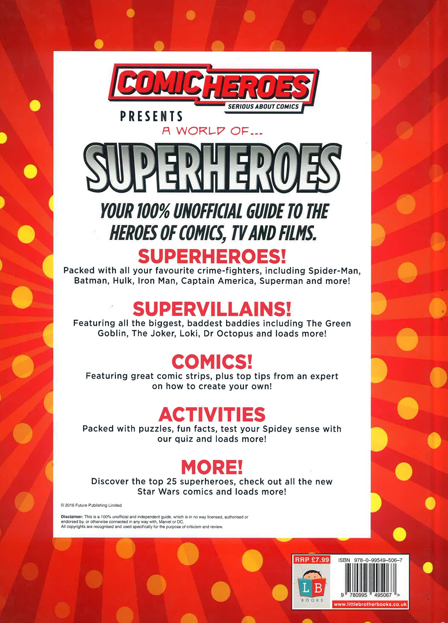 The Comic Heroes Annual is essential for all comic book, video game and movie superhero fans. From Spiderman to Batman, Superman to Ironman, this Annual tackles heroes, villains, sidekicks and super powers. Packed full of activities, quizzes, puzzles, facts and much more to test your knowledge.