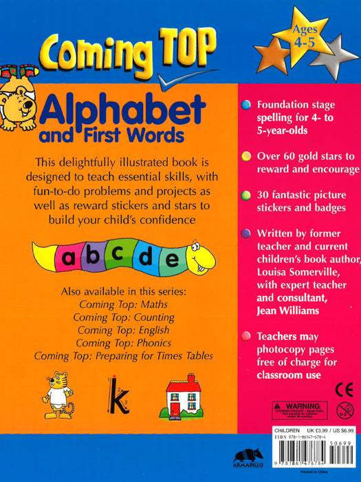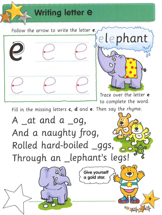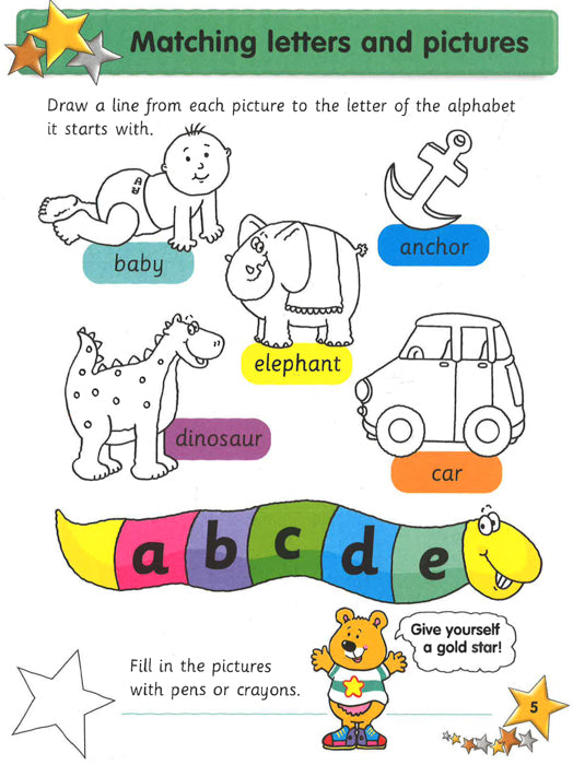 This book includes 60 gold star stickers - and 30 illustrated stickers for added fun and value. You can get a head start on classroom skills. It includes over 25 activities make learning fun and easy - cross out the thing that does not begin with 'a', complete the words that start with 'b', and play the alphabet zoo game. With reusable stickers to put on every page, it includes progress charts to track improvement. Teachers may photocopy pages for school use This delightfully illustrated book is designed to teach essential skills in spelling, with fun-to-do problems and projects. It helps you to speak and write all the letters, draw a 't' on the tiger's T-shirt, and join dots in alphabetical order. There are also reward stickers and stars to boost confidence.