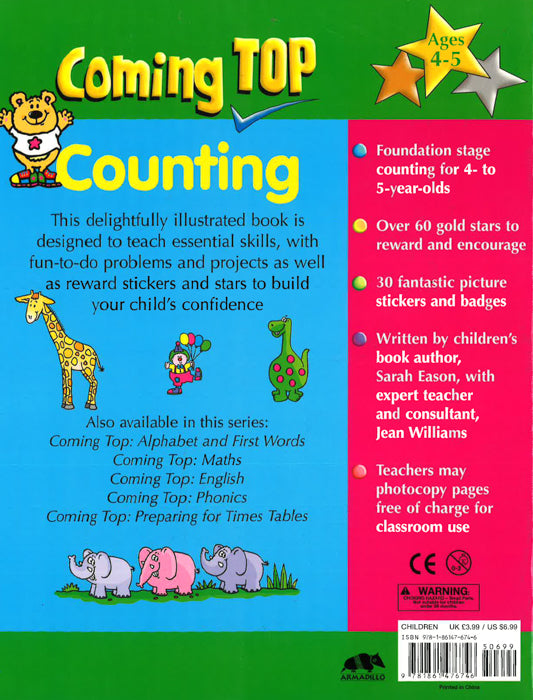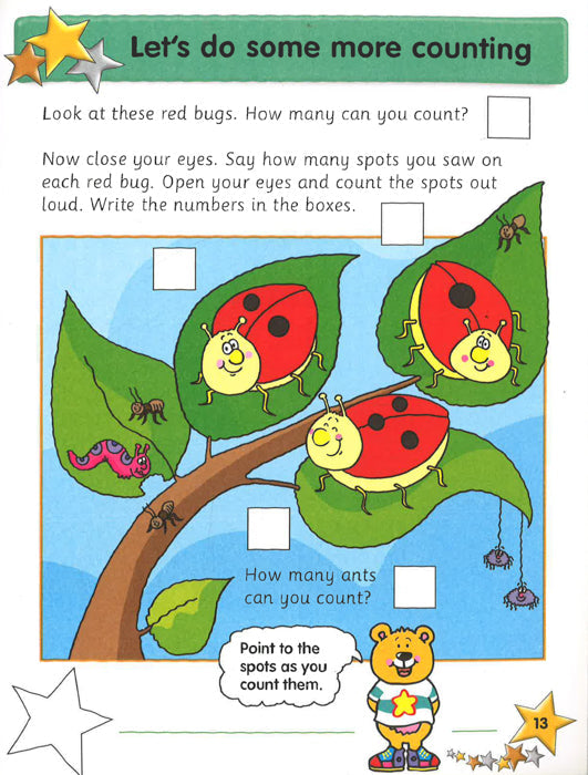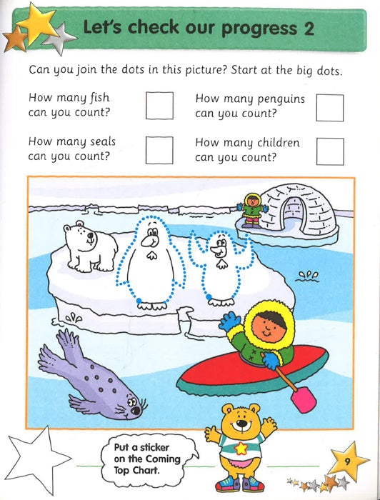 This book offers 60 gold star stickers - and 30 illustrated stickers for added fun and value. You can get a head start on classroom skills. It provides over 30 activities which make learning fun and easy - group items at a teddy bears' picnic, work out how many cakes have been eaten, and complete a counting maze. With reusable stickers to put on every page, this book includes progress tests and charts to track improvement and build ability. Teachers may photocopy pages for school use. This wonderfully illustrated workbook is designed to teach essential skills, with fun problems and projects. While matching numbers to pictures, counting clowns' balloons and adding up the dinosaurs' spots, children won't realize just how much they are learning!