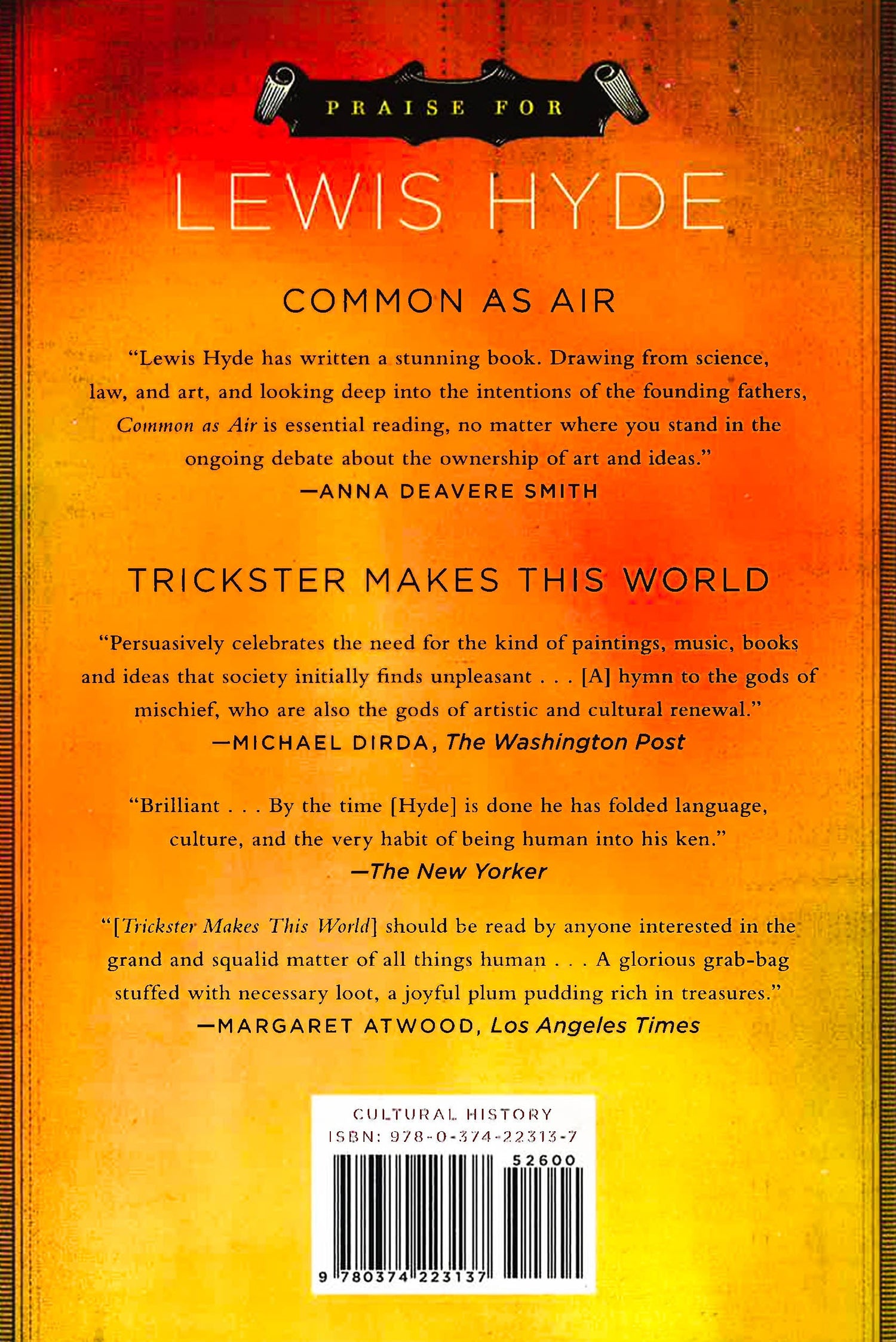Common as Air offers a stirring defense of our cultural commons, that vast store of art and ideas we have inherited from the past that continues to enrich our present. Suspicious of the current idea that all creative work is "intellectual property," Lewis Hyde turns to America’s founding fathers - men like John Adams, James Madison, and Thomas Jefferson - in search of other ways to value the fruits of human wit and imagination. What he discovers is a rich tradition in which knowledge was assumed to be a commonwealth, not a private preserve. For the founding fathers, democratic self-governance itself demanded open and easy access to ideas. So did the growth of creative communities, such as that of eighteenth-century science. And so did the flourishing of public persons, the very actors whose "civic virtue" brought the nation into being. In this lively, carefully argued, and well-documented book, Hyde brings the past to bear on present matters, shedding fresh light on everything from the Human Genome Project to Bob Dylan’s musical roots. Common as Air allows us to stand on the shoulders of America’s revolutionary giants and to see beyond today’s narrow debates over cultural ownership. What it reveals is nothing less than an inspiring vision of how to reclaim the commonwealth of art and ideas that we were meant to inherit.