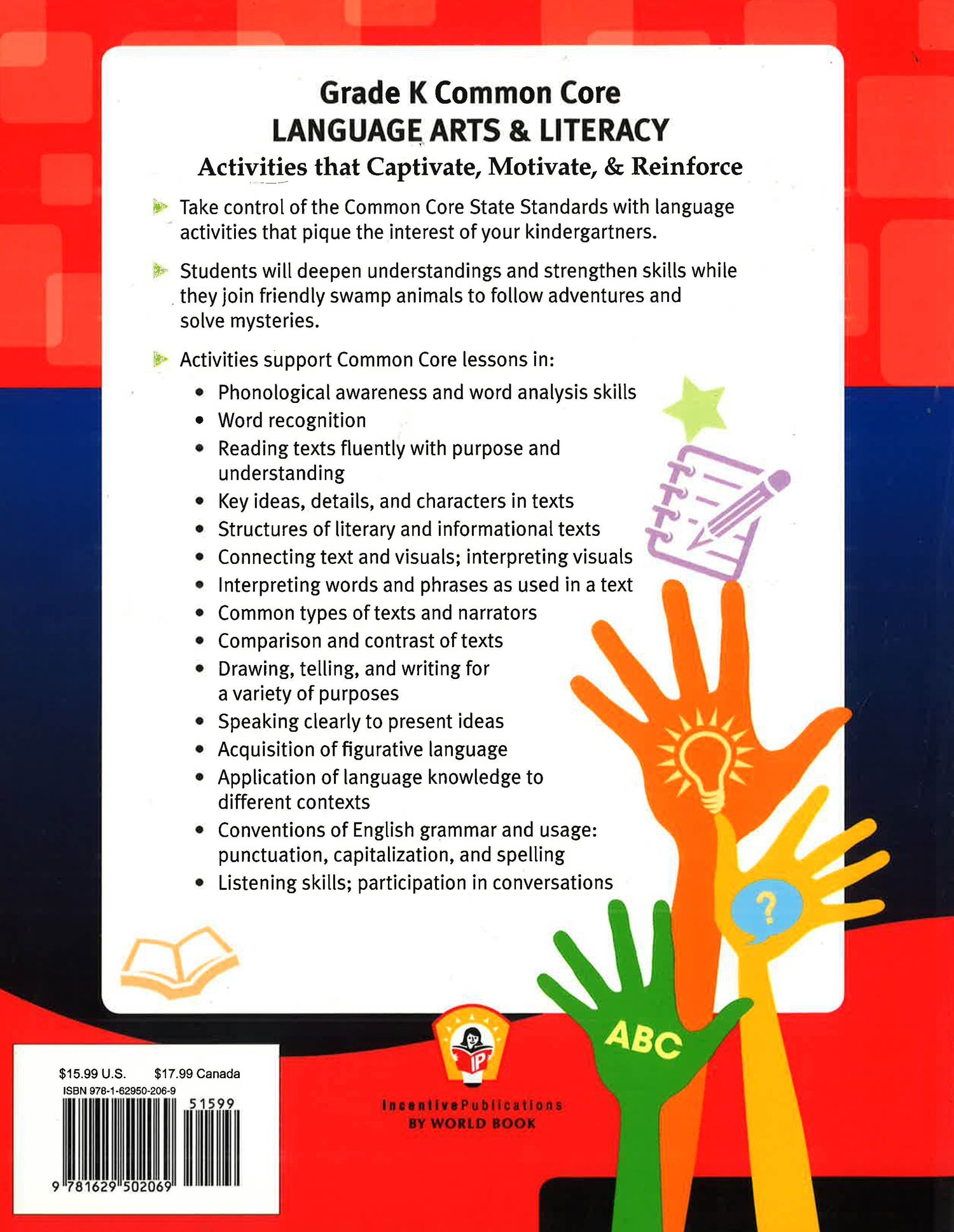 Common Core Language Arts & Literacy Kindergarten is a collection of motivating puzzles and activities specifically aligned with kindergarten Common Core State Standards in English Language Arts. These supplemental puzzles, stories, and adventures deepen student understanding and reinforce specific literacy skills. Connections to core standards are listed for each activity including: foundational skills, reading literature, reading informative text, writing, speaking and listening, language skills, and more. Assessments are provided to measure a student's strengths and weaknesses in each major skill area, and is ideal for differentiated instruction in a classroom with varying skill levels.