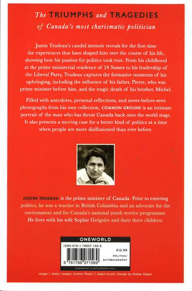 Filled with anecdotes, personal reflections, and never-before-seen photographs from his own collection, Common Ground is an intimate portrait of the man who has thrust Canada back onto the world stage. Not only this, but it also presents a moving case for a better kind of politics at a time when people are more disillusioned with politics than ever before.