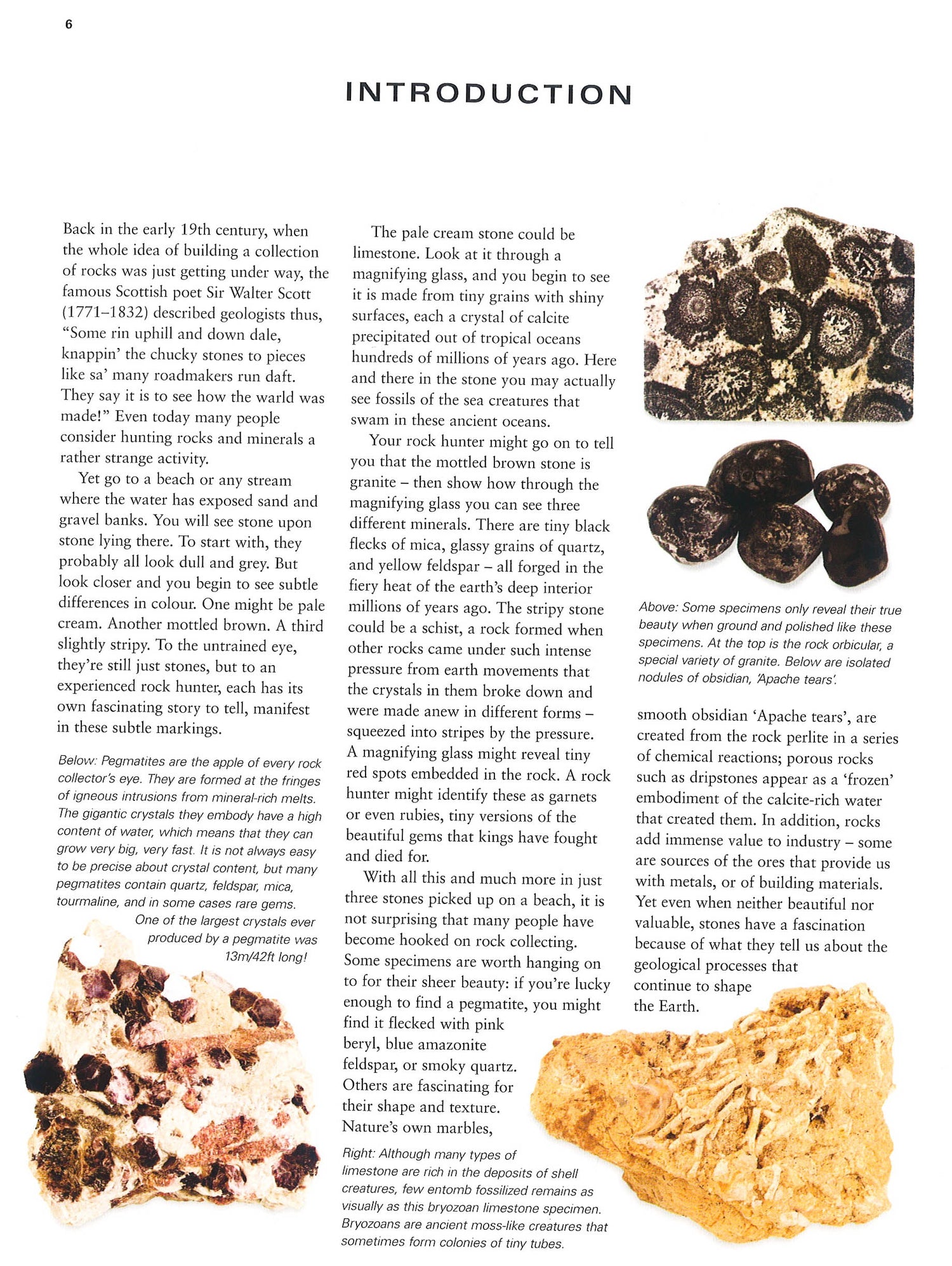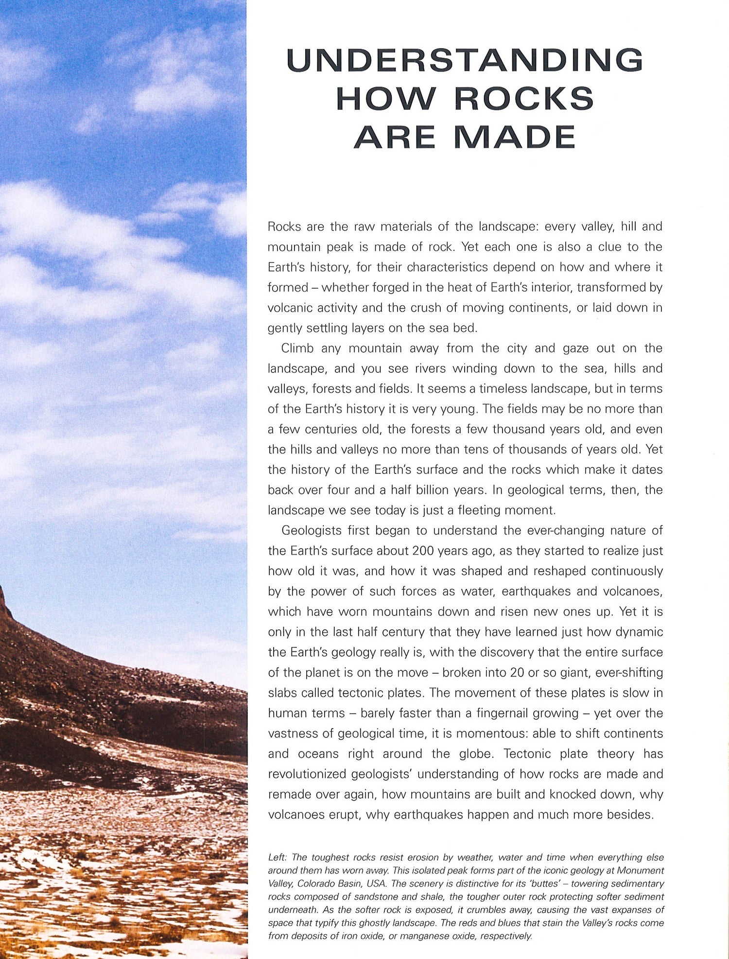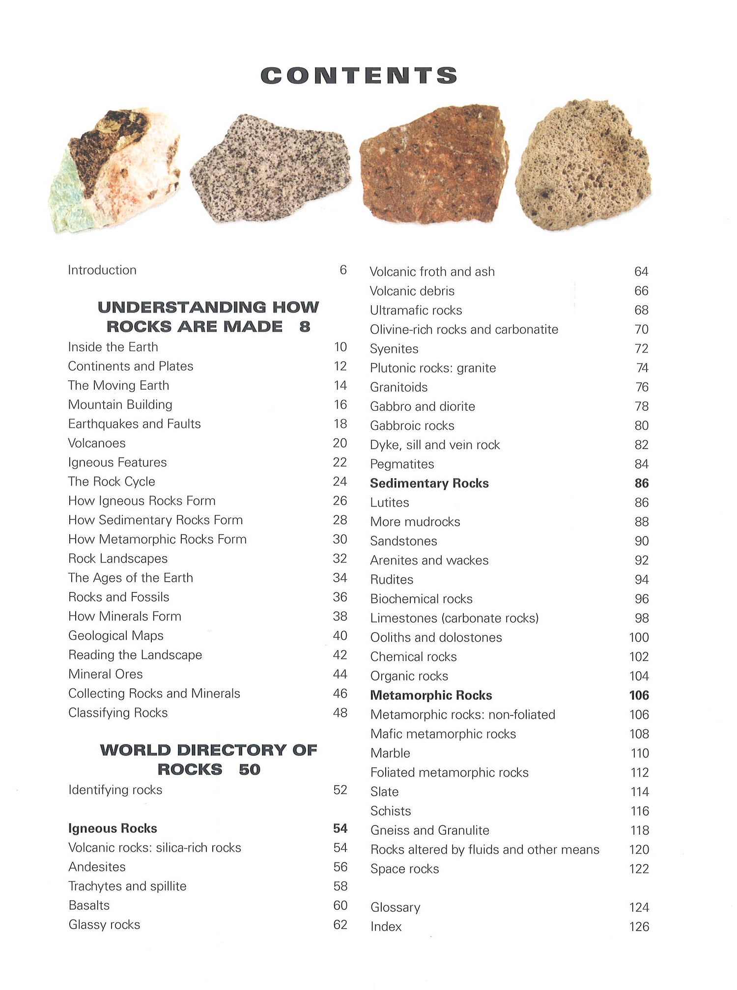 This title includes expert analysis of the key rock-forming environments of the world, plus full advice on identifying rock types and building a spectacular collection. It features more than 375 beautifully shot photographs and concise artworks. It categorizes rocks in family groups according to their composition, to enable the reader to gauge shared characteristics and distinguish between similar types. It explains how rocks form and the geological processes at work in the environment, including mountain-building, volcanic activity, plate tectonics and metamorphism. Simple identification techniques let amateurs classify rocks by quick and easy tests and comparisons. This is the ultimate photographic guide to all types of rock, an essential reference book for even the most experienced geologist, with many tips on sourcing rocks in the field and identifying collected specimens. The first part of the book will give amateurs and enthusiasts a thorough grounding in how rocks are made. The second part is a photographic directory of 150 different rocks, grouped by major categories and composition.It covers such ancient rocks as greenstone, rare rocks like eclogite, pegmatites - prized for their beauty - and much more. Practical information and checklists to aid classification make this the perfect fieldbook.