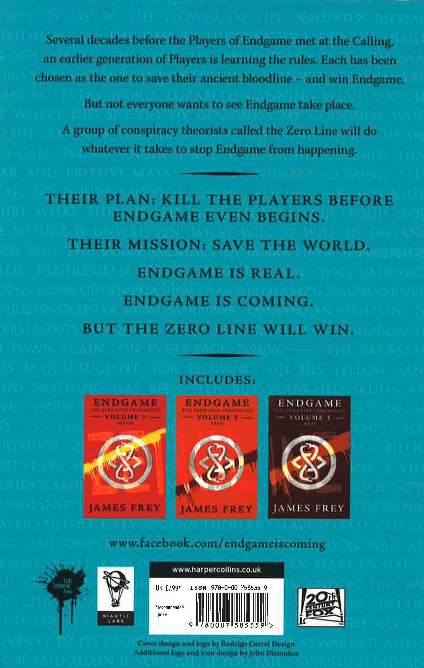 Several decades before the Players of Endgame meet at the Calling, an earlier generation of Players is learning the rules. Each has been chosen as the one to save their ancient bloodline-and win Endgame. But not everyone wants to see Endgame take place. One group in particular has other ideas. They call themselves the Zero Line, and this is their mission: Kill the Players. Stop Endgame. Prevent the end of the world.