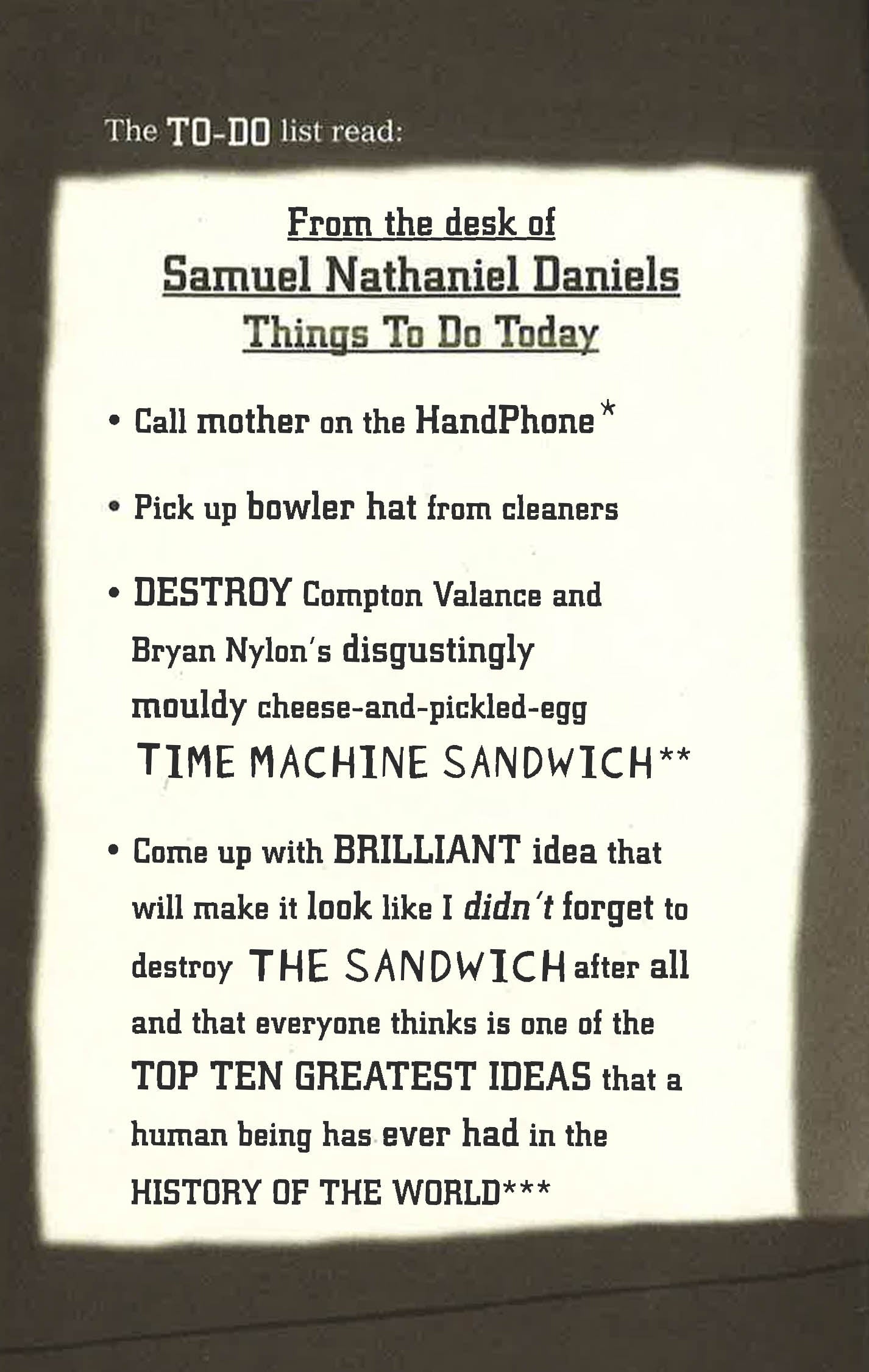 Fresh from saving the universe, Compton and Bryan are whisked off to the future to become trainee Time Crime Agents. But when a notorious criminal mastermind escapes from a maximum security prison and kidnaps Bryan, Compton must race against time to save his best friend - and the world - from evil...using only a slimy sandwich!