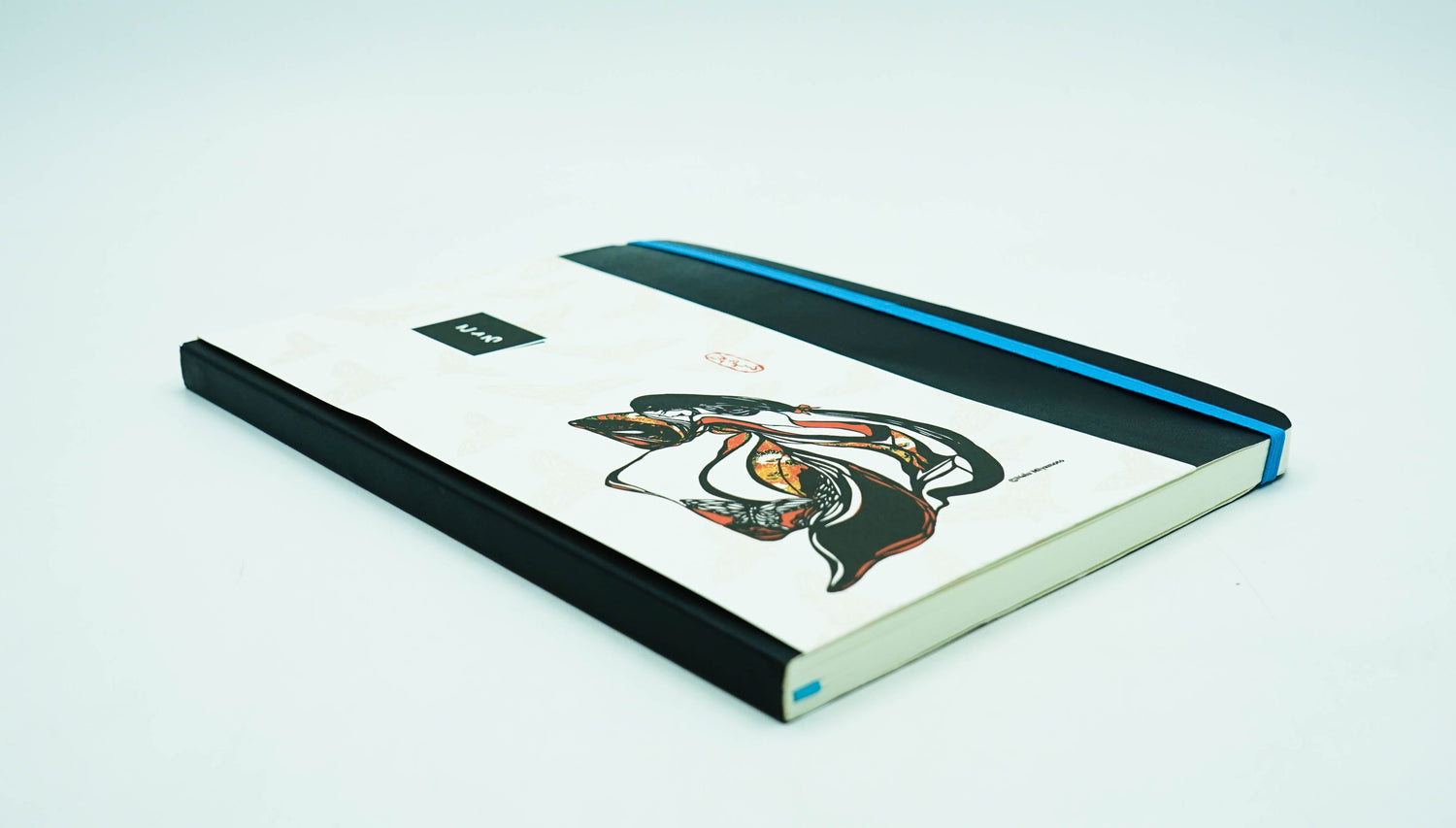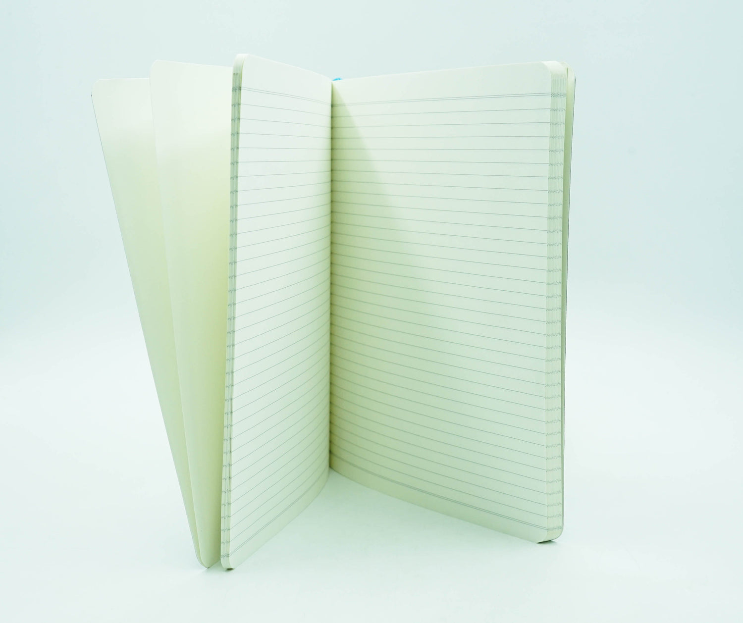 Lined, 194 numbered pages (20 perforated pages to tear out), high-quality chamois-coloured paper (PEFC-certified), 54 lbs, allows usage of fountain pens without leaving stains