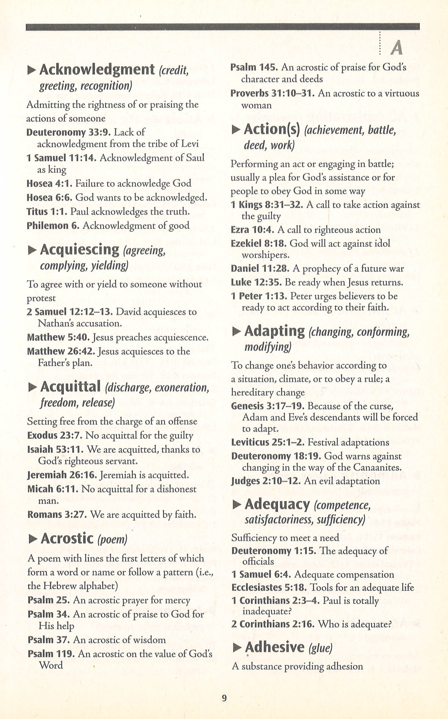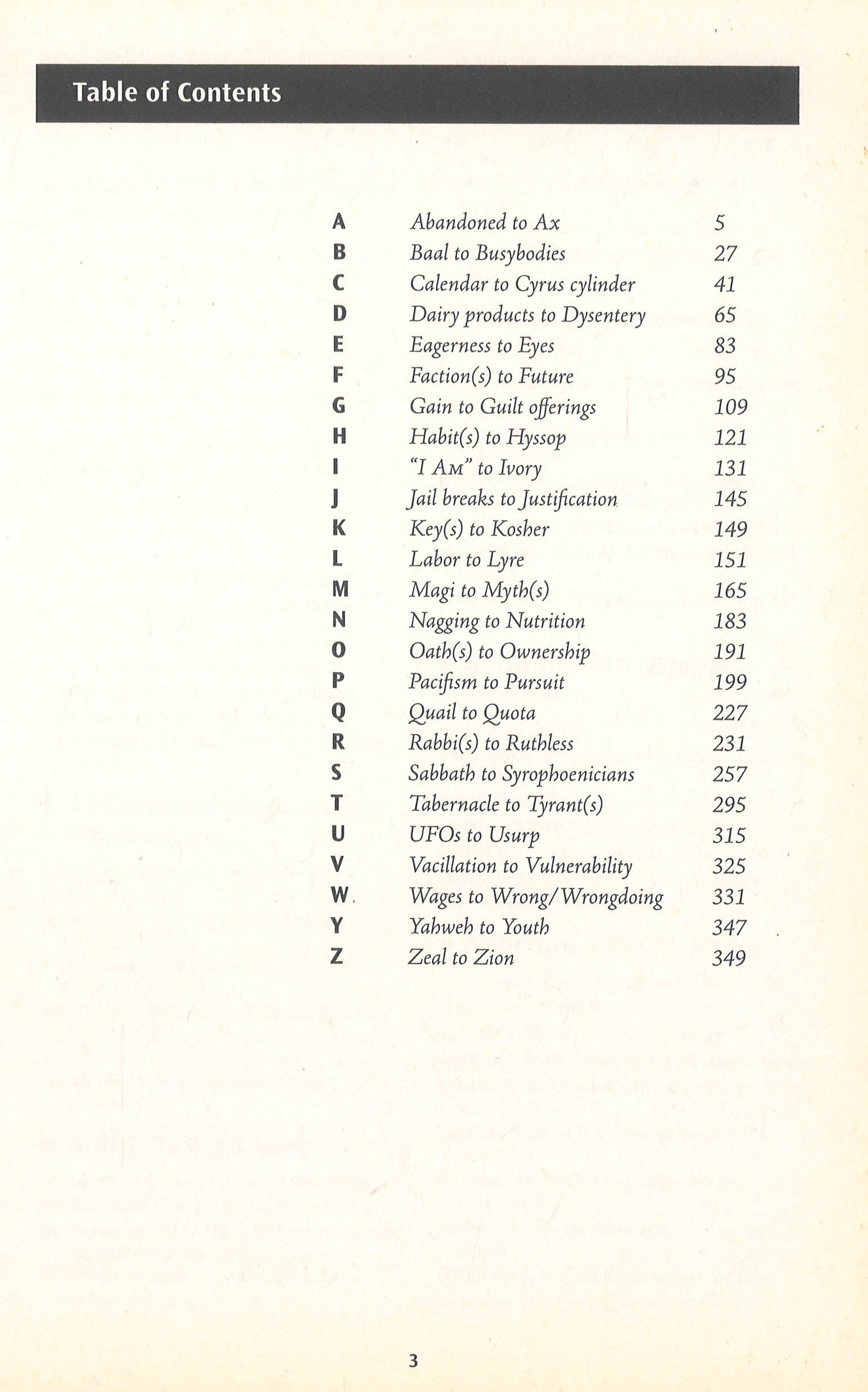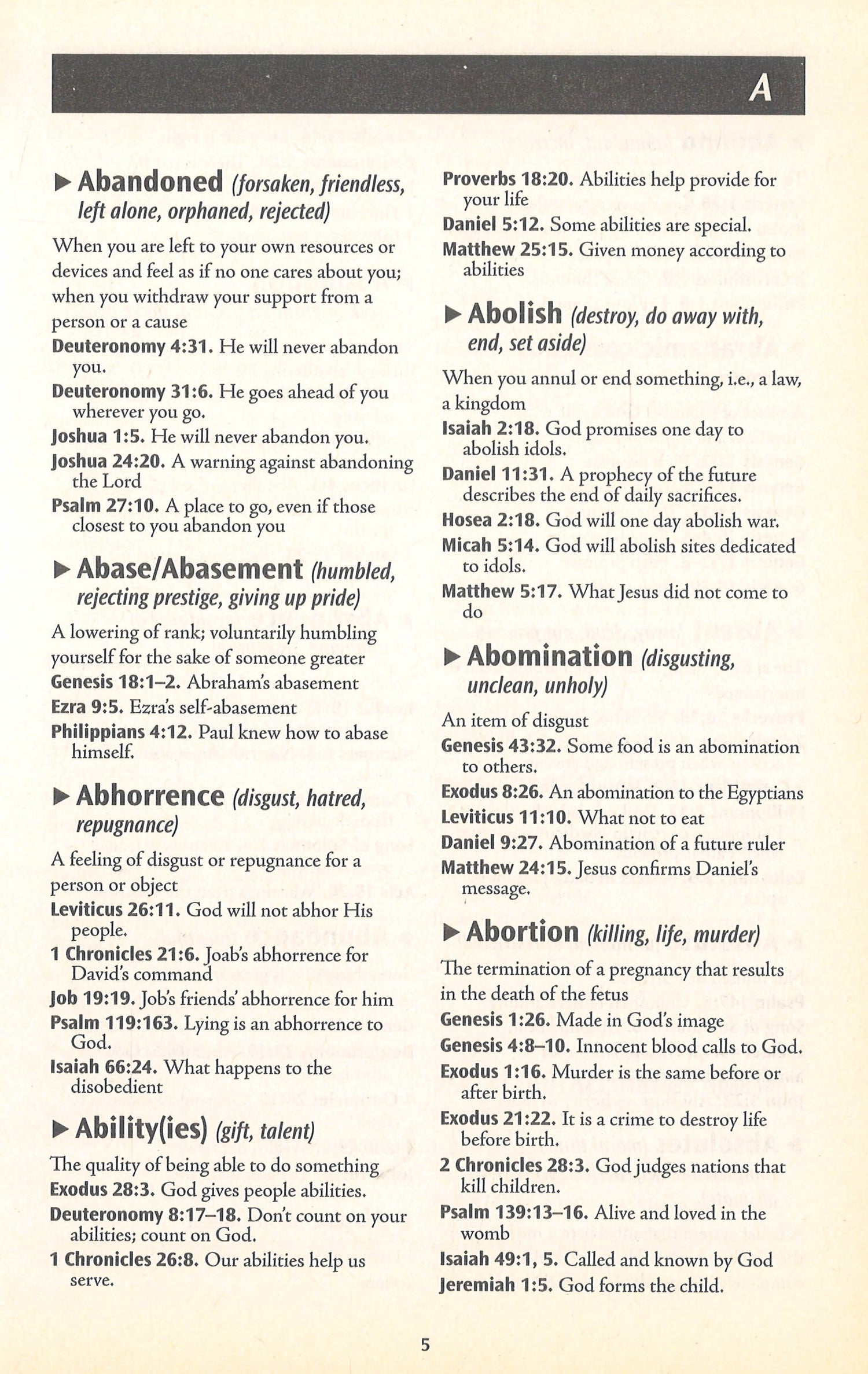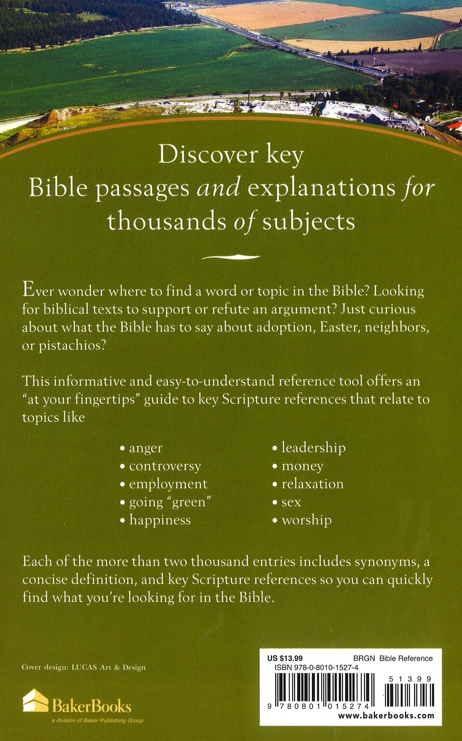 This informative and easy-to-understand reference tool offers an "at your fingertips" guide to key Scripture references, Bible stories, and verses that relate to topics like anger, controversy, employment, going "green", happiness, leadership, money, relaxation, sex, and worship. The Concise A to Z Guide to Finding It in the Bible provides a quick and entertaining read for people interested in what the Bible has to say about a wide range of topics.