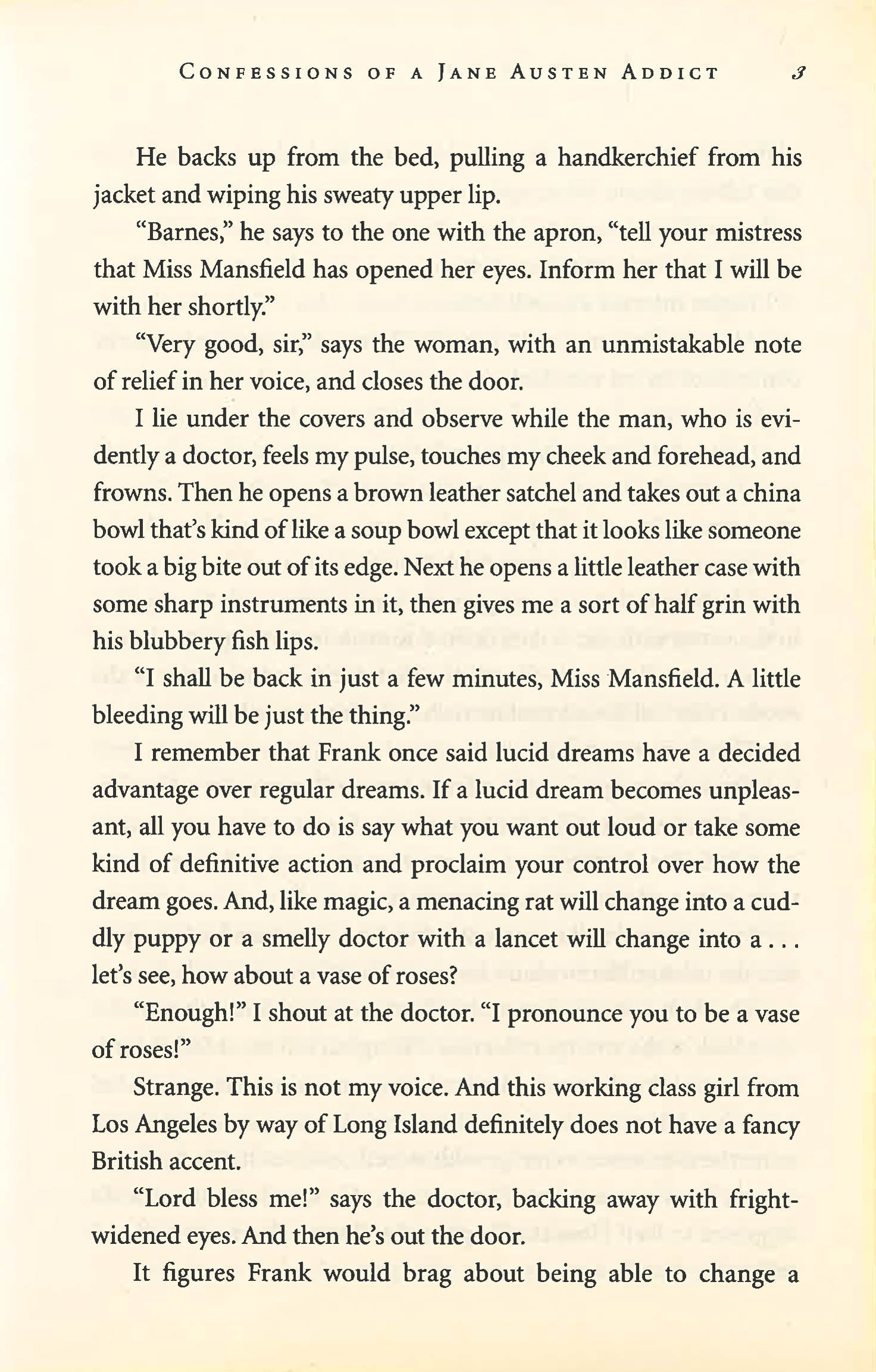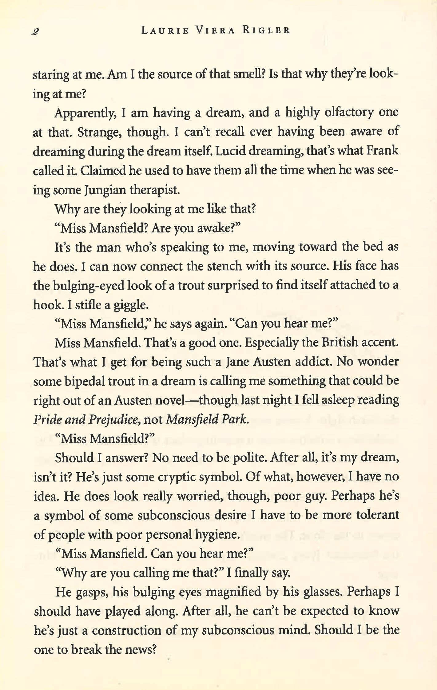I'm sure wherever the real Jane is, she's just as eager to get back to her own life as I am to mine. So why not just relax in the meantime, experience the sensation of living in another body and another time, Jane Austen's time, no less, and have faith that real life will return soon enough. At least in this world someone else does the shopping and cleaning up. Sassy, smart and suddenly single Courtney Stone is a typical, modern LA girl. That is, until she wakes up one morning in Regency England in the body of Jane Mansfield. At first she thinks she must be dreaming - maybe she's read all of Jane Austen's books a few too many times - but as time goes on she finds there is a lot she needs to get to grips with: a new accent, a new body, a wicked new 'mother', and most excitingly, a new man in her life: the dashing, dishy Charles Edgeworth. But is he a Darcy, a Wickham, or merely a confusing distraction? As Courtney trips through the social minefield of life in Jane Austen's England she wonders: Will she ever get her twenty-first century, west-coast life back - and does she even want to?