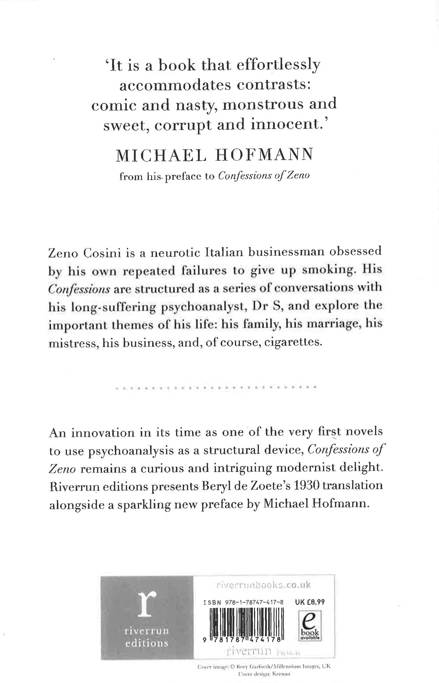 I am sure a cigarette has a more poignant flavour when it is the last' A neurotic Italian businessman obsessed by his own hypochondria, Zeno Cosini recounts his early years to his psychoanalyst Dr S as a form of therapy. With a cigarette clutched permanently between his fingers, he explores the important themes of his life: his love of smoking, his relationship with his parents, his marriage. Structured as a series of conversations with his psychoanalyst, Zeno was an innovation in its time, and remains a curious and intriguing delight. Michael Hoffman places Confessions of Zeno in its European context in his sparkling introduction.