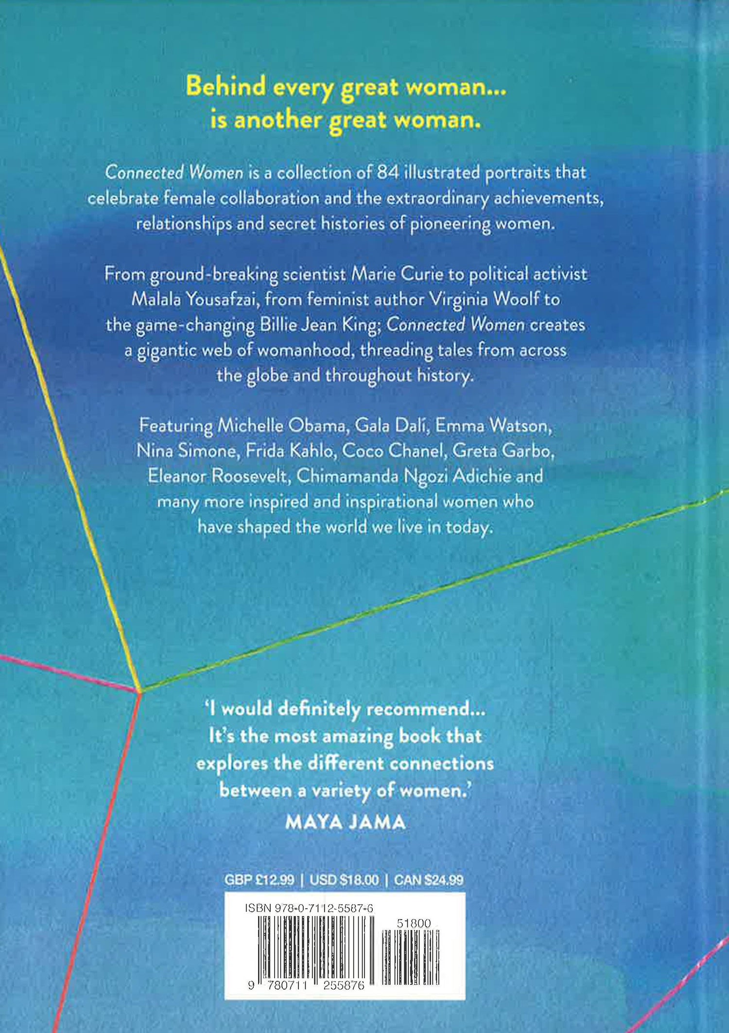 From ground-breaking scientist Marie Curie to political activist Malala Yousafzai, from feminist author Virginia Woolf to the game-changing Billie Jean King; Connected Women creates a gigantic web of womanhood which celebrates the relationships between the world’s most inspirational and influential women.
