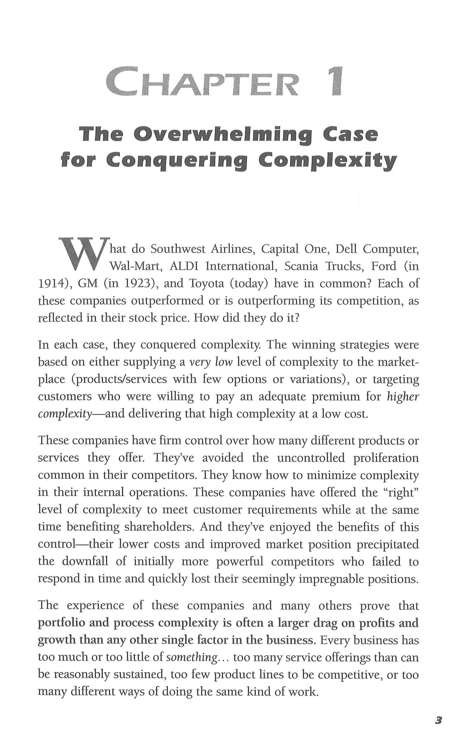 'The winners and losers in the next decade...may well be separated by a single factor: those that conquer complexity and those that do not' - Michael L. George and Stephen A. Wilson. Here's a guarantee: Somewhere in your business, there is too much complexity. It erodes profitability, impedes productivity, confuses customers, and adds non-recoverable costs that can kill you in the marketplace. But that's only half the equation: You may also be losing out by having too little of the complexity where it counts - in the products, services, and options you offer to customers. Customers call this value-added complexity "variety", "options", or "customization". Either way, as you'll discover in "Conquering Complexity in Your Business", the impact of complexity is enormous in terms of lost profit and missed growth opportunities.In this breakthrough book from Michael L. George and Stephen A. Wilson, you'll find out why the trick to outperforming your competition and staying ahead of the curve in today's highly customer-centric business environment is achieving the optimum levels of complexity in your products, services, and operations. Best of all, for the first time in print, you'll find powerful tools that will let you quantify and pinpoint complexity in your business. You'll also find strategies for conquering that complexity and dramatically increasing productivity, profits and market share. "Conquering Complexity in Your Business" is packed with real-world practical advice and guidance from both a strategic and tactical perspective. With the help of fascinating and instructive in-depth case studies from Dell, Capital One, Southwest Airlines, Wal-Mart, Toyota, Scania, Lockheed Martin, Aldi, and other companies that have conquered complexity to become world leaders in their industries, the authors show you how to: strategically identify the offering and process complexity in your business; quantify the impact of that complexity; decide which complexity you want to keep to drive growth and which to eliminate to cut costs; select and implement specific operational approaches to eliminate different kinds of complexity; and, sustain an environment with just the right balance of complexity your company needs to maximize productivity and profits.Don't let complexity impose a ceiling on your profits and growth. Read "Conquering Complexity in Your Business" and learn how to serve your customers more effectively, dominate your competition, and delight your shareholders. 'This is an important book that should be read by every CEO. "Conquering Complexity" is not just about reducing costs; it's fundamentally about growing revenues and creating economic value by serving your customers more effectively' - Lou Giuliano, Chairman, President and CEO, ITT Industries. 'Complexity creeps into organizations incrementally, and each additional decision is, by itself, almost always justifiable. But faced with a crisis, many companies, including American Airlines, have chosen a head-on approach to removing complexity - we simply could not afford to do otherwise' - Gerard J. Arpey, President and CEO, AMR Corporation and American Airlines.'As we tackle the most resistant issues in the company, it is clear that complexity is a key causal. The challenge is getting our arms around the cost of complexity. Being able to size the opportunity creates a compelling call to action' - Anne M.Mulcahy, Chairman and CEO, Xerox Corporation. 'It is critical that the authors' study and analysis gets outs to a wider audience to explain how complexity occurs and more importantly, how to both attack it and prevent it' - Chris Cool, Vice President, Northrup-Grumman Corporation.Many managers and executives intuitively understand that the benefits from conquering complexity can be huge. But only a handful worldwide know to how to precisely measure, manage, and profit from complexity. Now, with "Conquering Complexity in Your Business", a breakthrough book from complexity gurus Michael L. George and Stephen A. Wilson, all of that changes. Learn how to break through the ceiling on your company's profits and growth.