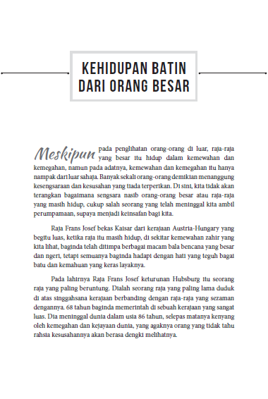 Buku ini mengandungi pelbagai kisah dan pengalaman hidup orang-orang tertentu yang menempuh masalah.