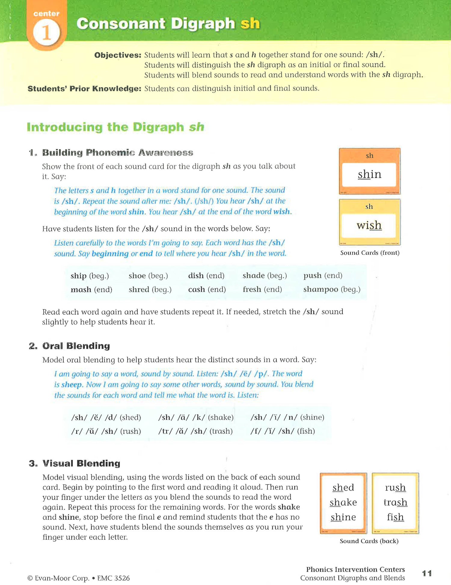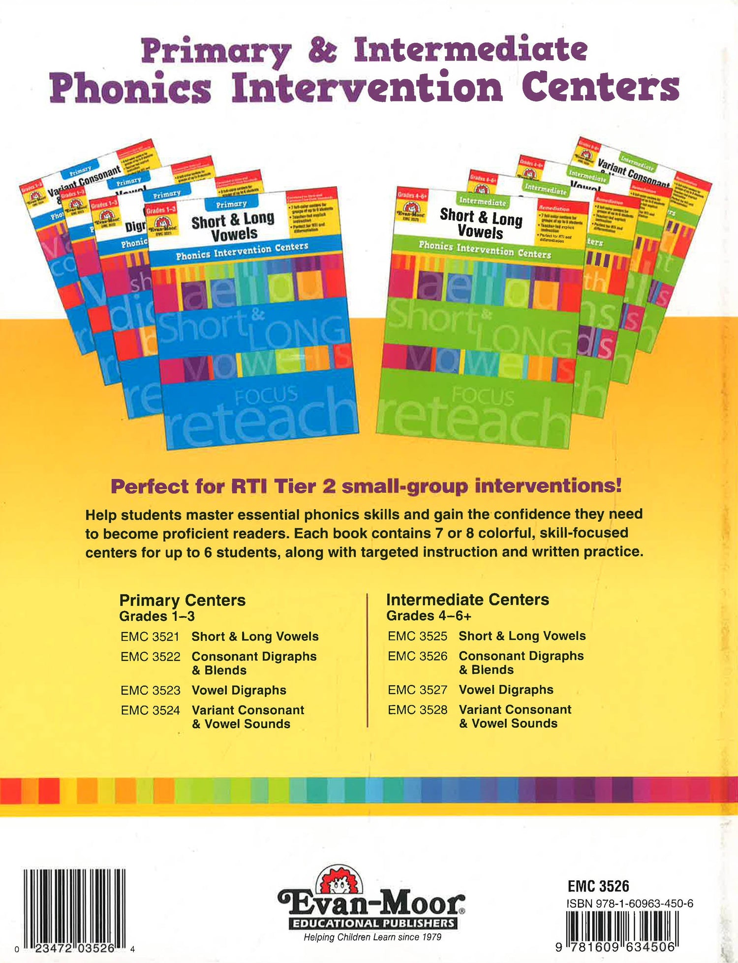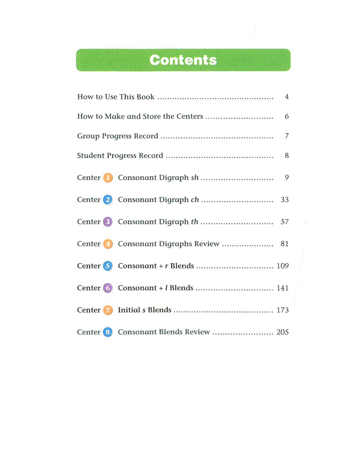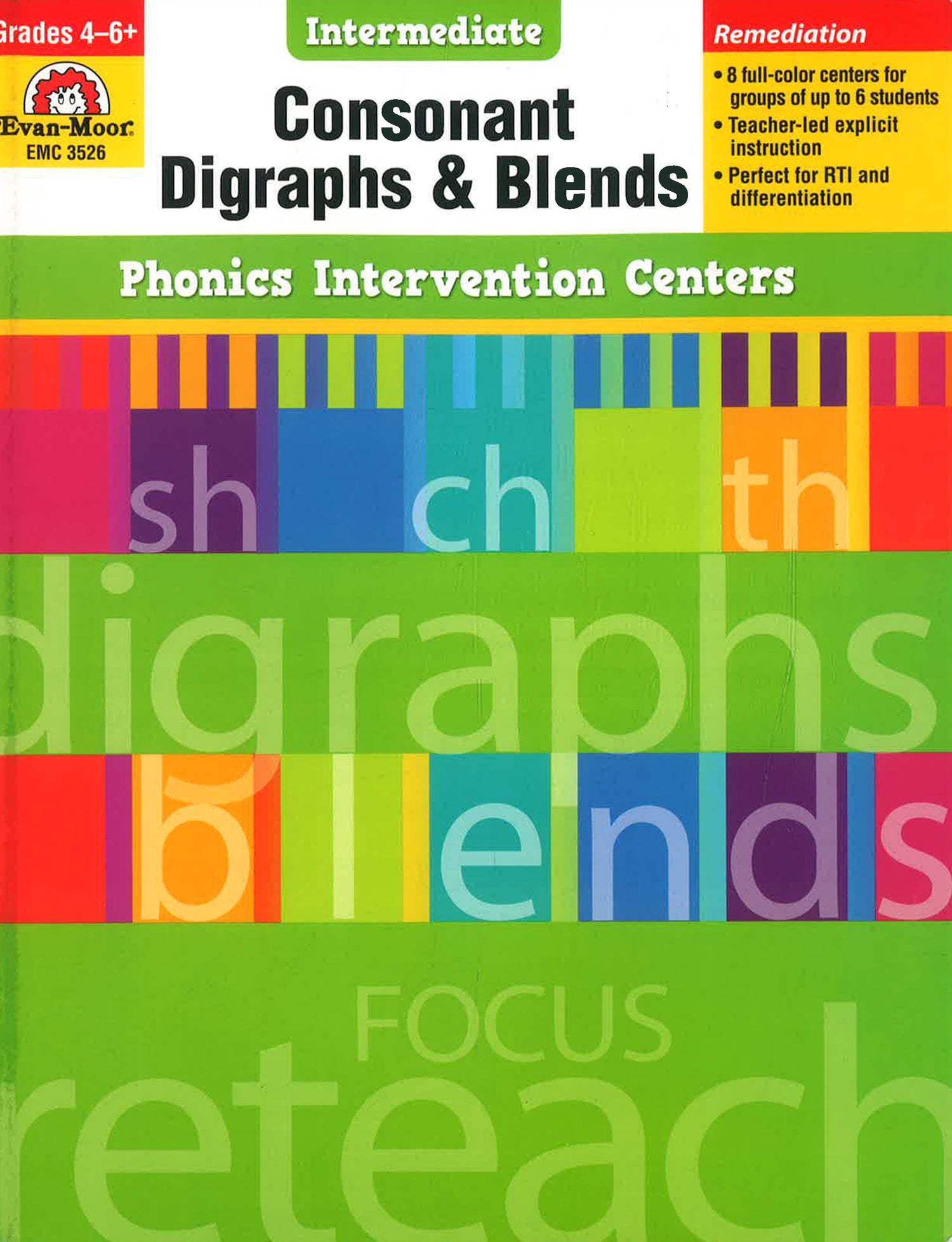Phonics Intervention Centers provide explicit phonics instruction and targeted skills practice in small-group centers. Early learners, English language learners, and struggling readers will benefit from the focused instruction and practice, which includes auditory, visual, oral, and hands-on activities and colorful, illustrated materials. Improving decoding skills and phonemic awareness in a small-group format helps students master important reading skills. Consonant Digraphs and Blends for Intermediate Grades contains eight full-color centers for groups of up to six students: sh th ch consonant digraphs review consonant plus r blends consonant plus l blends initial s blends consonants blends review.