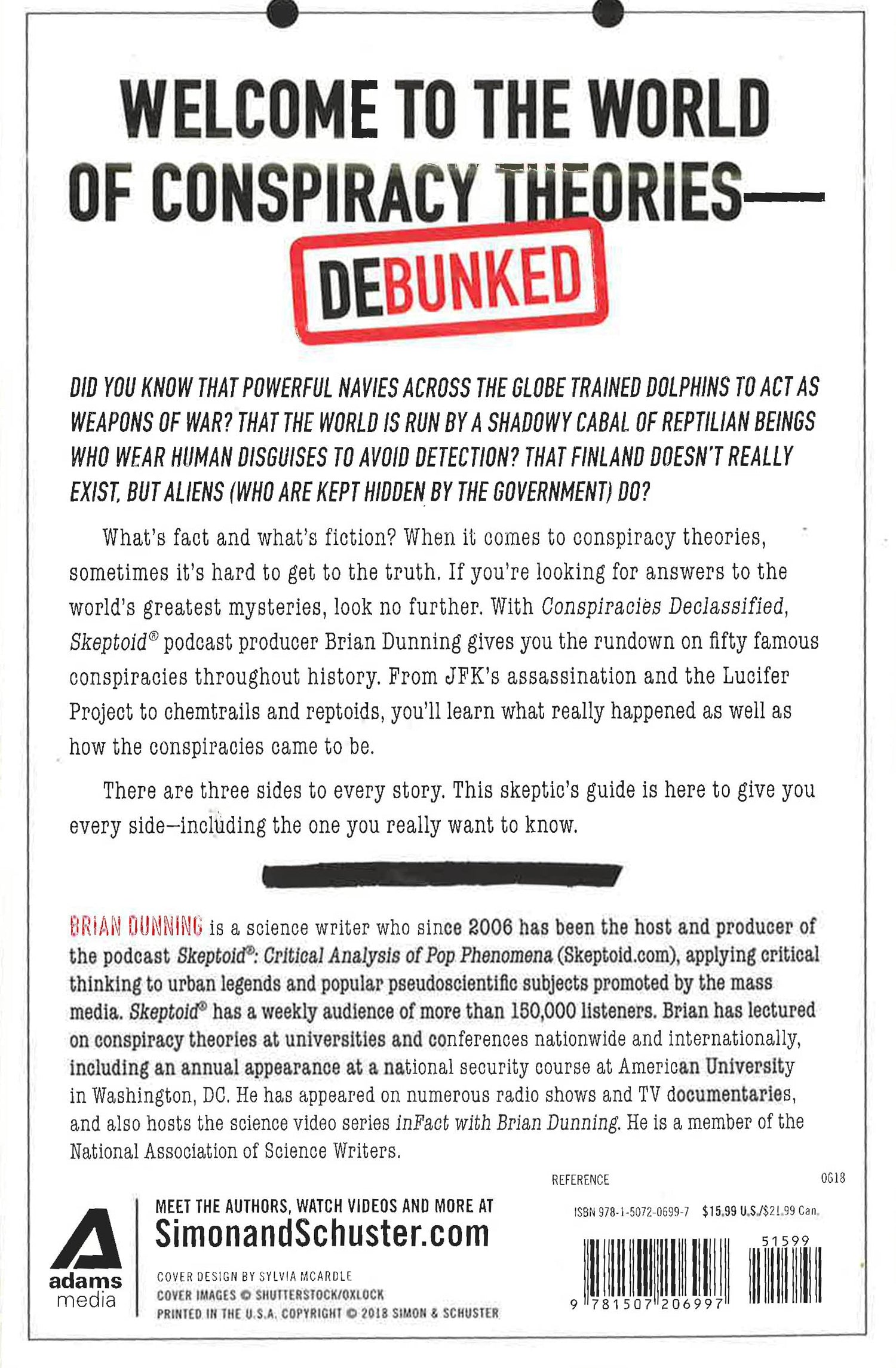 A collection of the wildest conspiracies to ever exist, from mind control experiments to lizard people, this book explores, debunks - and sometimes proves - the secret stories that don’t quite make it into the history books.What's fact and what's fiction? With conspiracy theories, sometimes it's hard to get to the truth!In Conspiracies Declassified, author and expert skeptic Brian Dunning explains fifty true stories of famous conspiracies throughout history. From the moon landing hoax, to chemtrails, to the mind control dangers of fluoride, Dunning is here to sort the truth from the lies to tell you what really happened.