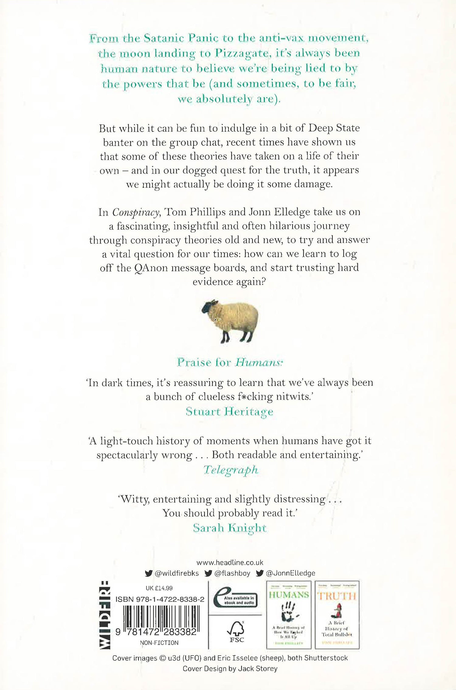 Tom Phillips (Humans; Truth) and Jonn Elledge (The Compendium of Not Quite Everything) team up to debunk the greatest conspiracy theories humans have ever espoused - to teach us how not to fall for themFrom the Satanic Panic to the anti-vaxx movement, it's always been human nature to believe we're being lied to by the powers that be (and sometimes, to be fair, we absolutely are).But while it can be fun to indulge in a bit of Deep State banter on the family Whatsapp group, recent times have shown us that some of these theories have taken on a life of their own - and in our dogged quest for the truth, it appears we might actually be doing it some damage. In Conspiracy, Tom Phillips and Jonn Elledge take us on a fascinating, insightful and often hilarious journey through conspiracy theories old and new, to try and answer an important how can we learn to log off the QAnon message boards, and start trusting hard evidence again?