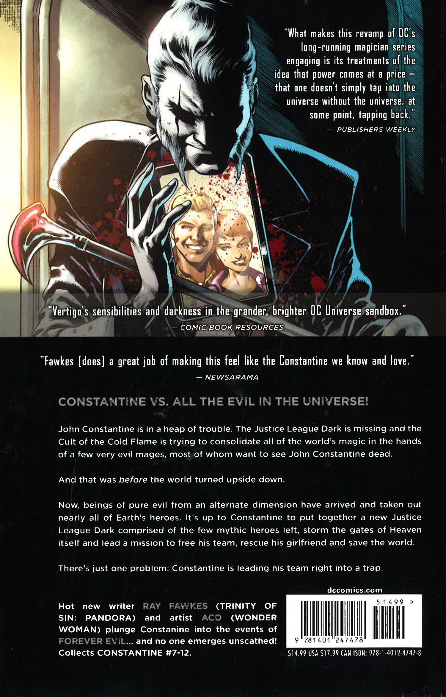 The star of JUSTICE LEAGUE DARK and HELLBLAZER--the longest-running Vertigo series--John Constantine has suffered a major loss at the hands of a former protege. With his vault of mystical weapons now in the hands of his greatest enemies, John Constantine must battle with Sargon and the Cult of the Cold Flame with all he has left -- his wits!