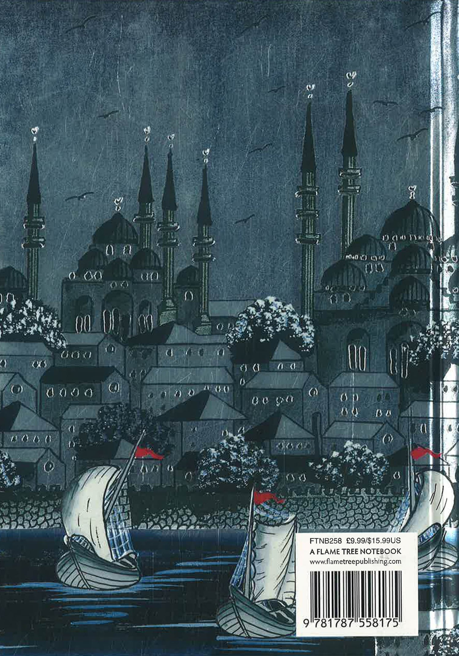 Part of a series of exciting and luxurious Flame Tree Notebooks. Combining high-quality production with magnificent fine art, the covers are printed on foil in five colours, embossed, then foil stamped. And they're powerfully practical: a pocket at the back for receipts and scraps, two bookmarks and a solid magnetic side flap. These are perfect for personal use and make a dazzling gift. This example features Constantinople Silver.