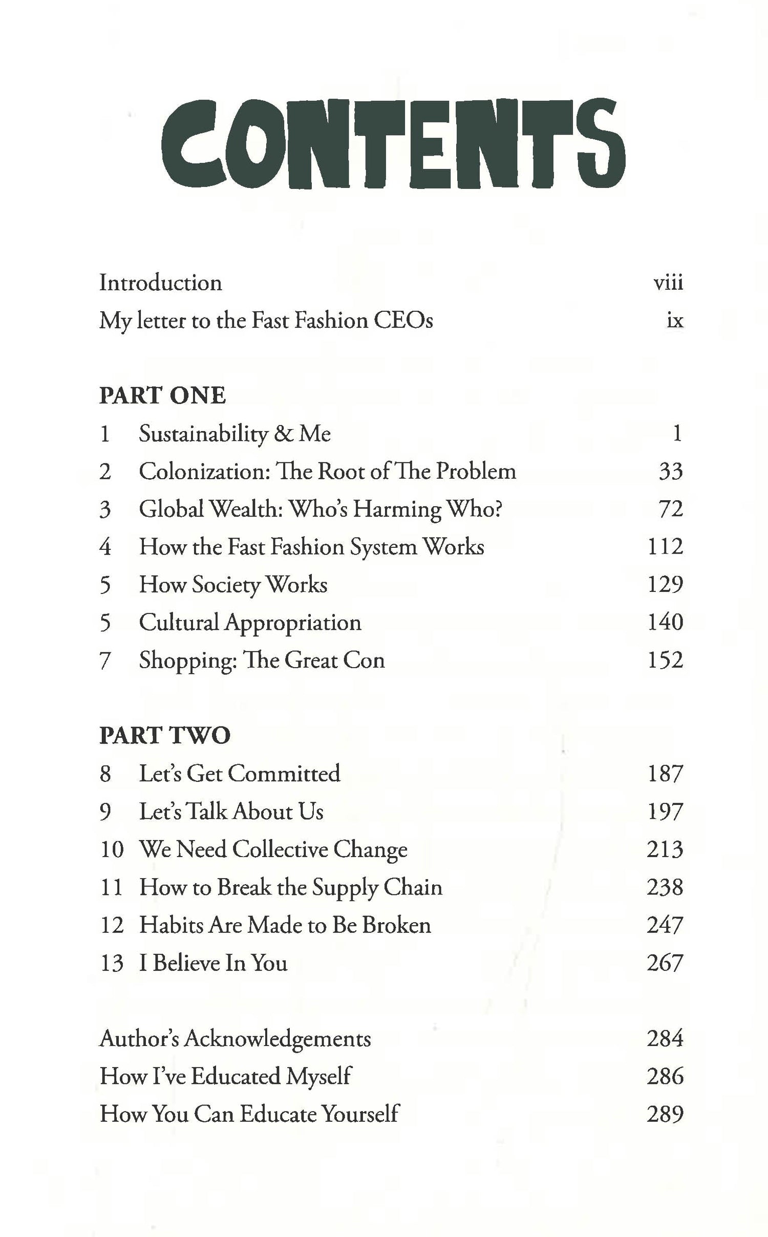 In the 'learning' first half of the book, she will expose you to the endemic injustices in our consumer industries and the uncomfortable history of the textile industry; one which brokered slavery, racism and today's wealth inequality. And how these oppressive systems have bled into the fashion industry and its lack of diversity and equality. She will also reveal how we spend our money and whose pockets it goes into and whose it doesn't (clue: the people who do the actual work) and will tell her story of how she came to learn the truth.