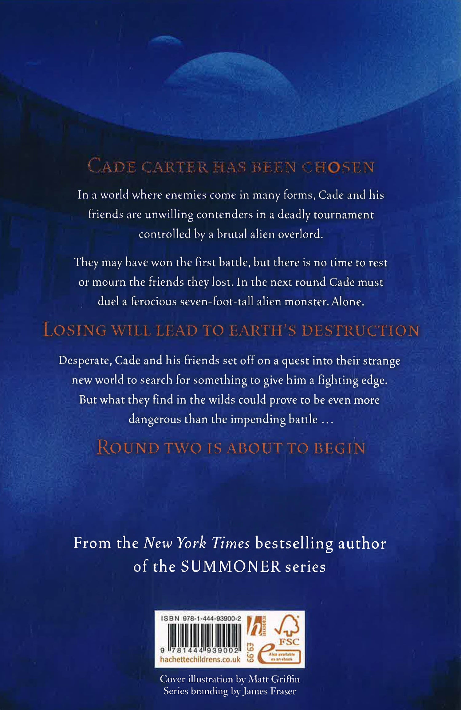 In a world far from our own, where enemies come in many forms, the ultimate battle for survival is about to begin ... The second book in the new trilogy from the bestselling author of the Summoner series. CADE CARTER HAS BEEN CHOSEN In a realm of monsters and warriors, Cade is an unwilling contender in a deadly tournament controlled by the brutal alien overlord Abbadon. Cade may have won the first round but the fight isn't over yet. For his next battle he must duel a seven-foot-tall, clawed monster - the reigning champion of an alien race. LOSING WILL LEAD TO EARTH'S DESTRUCTION Desperate for anything that may give him an advantage, Cade sets off on an expedition into the jungle to scavenge weaponry to help him win. But there he is captured by gladiators, and before he knows it he finds himself participating in a deadly new game where the prize is his freedom. ROUND TWO IS ABOUT TO BEGIN ...
