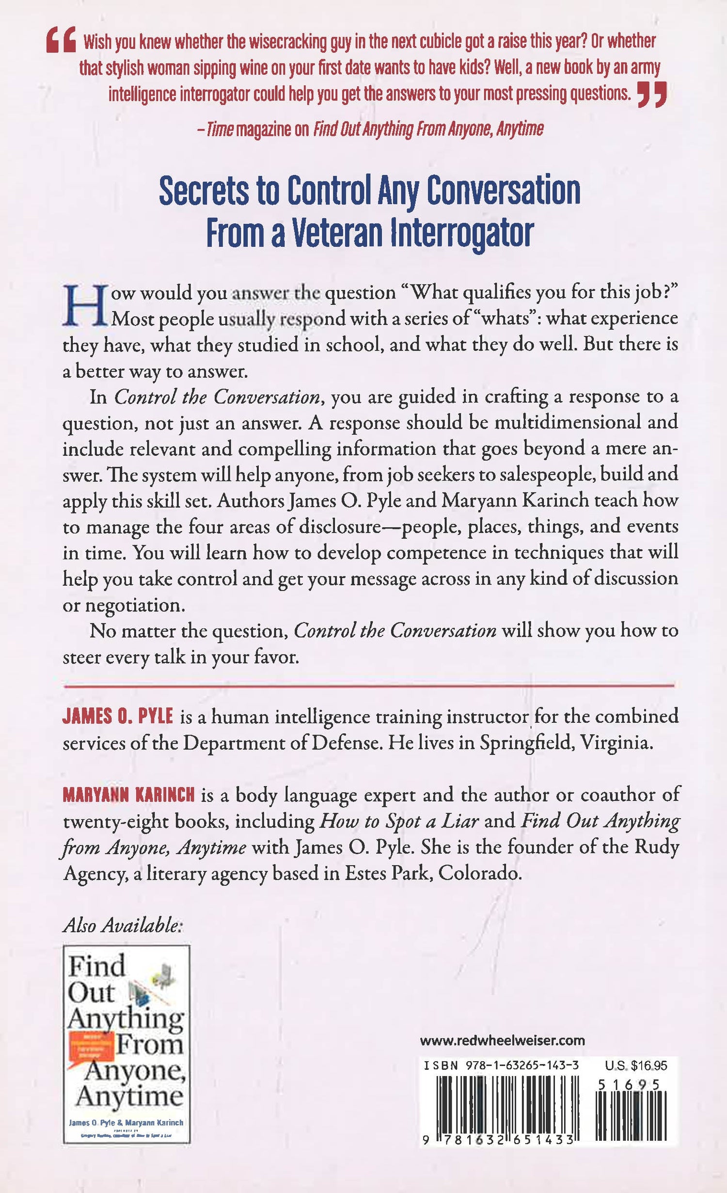 No matter the question, Control the Conversation will show you how to steer every exchange in your favor.