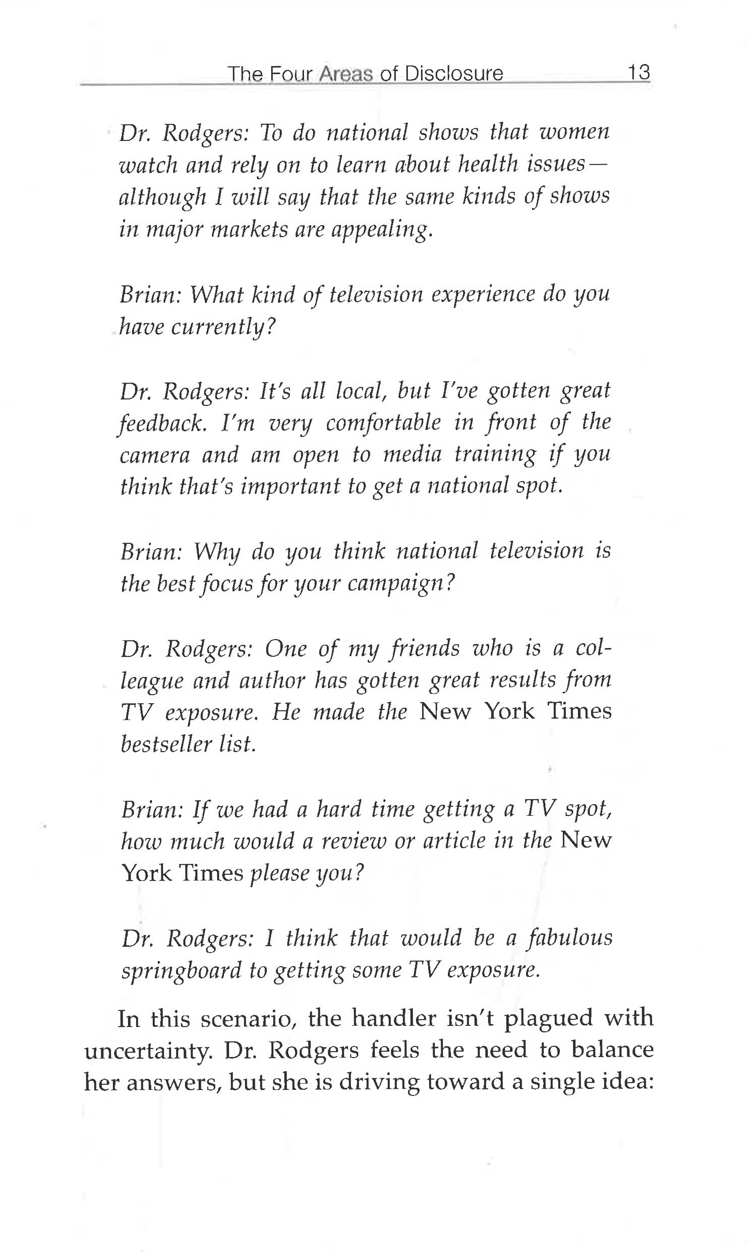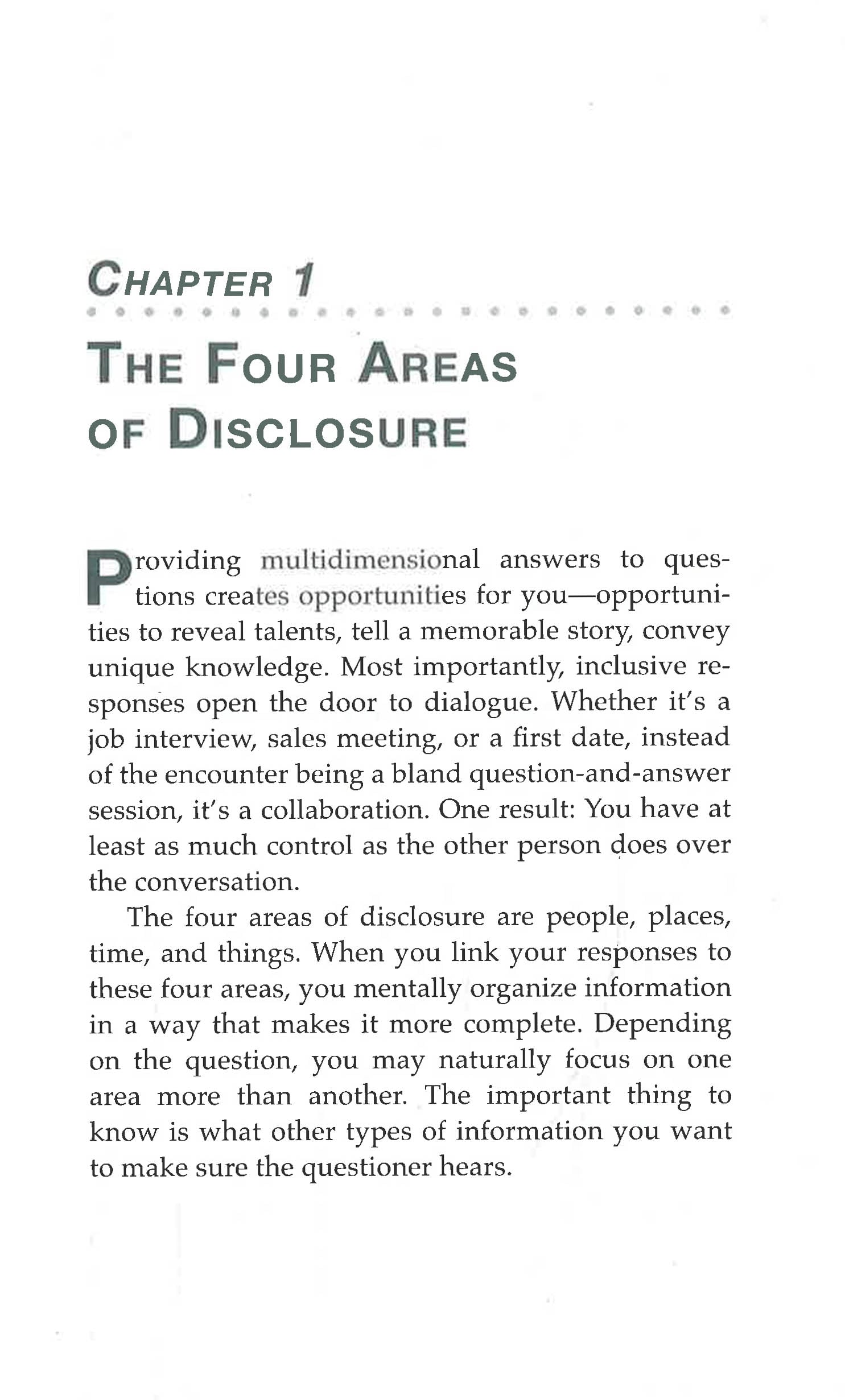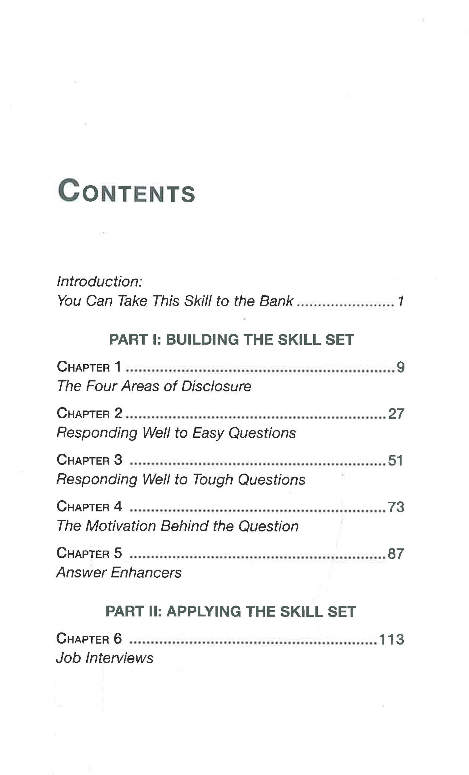 The authors help you build and apply this skill set. You will learn how to manage the four areas of disclosure--people, places, things, and events in time. You will also develop competence in techniques that will help you take control and get your message across in any kind of interview. You will discover how to: