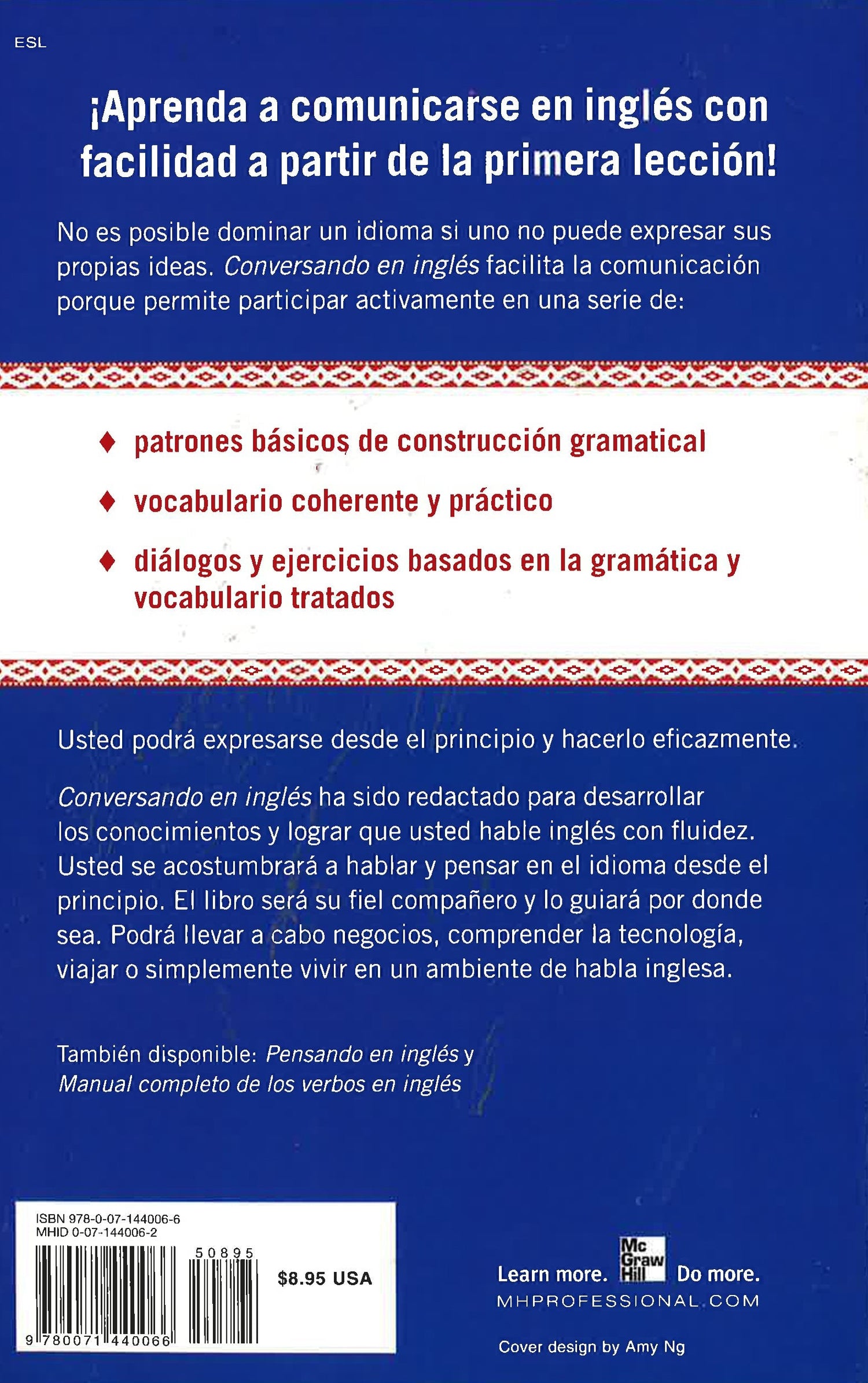 !Aprenda comunicar en ingles con facilidad a partir de la primera leccion! No es possible dominar un idioma si uno no puede expresar sus propias ideas. Conversando en ingles facilita la comunicacion porque permite participar activamente en una serie de patrones basicos de construccion grammatical, vocabulario coherente y practico y dialogos y ejercicios que se aprovechan de la gramatica y vocabulario tratados. Uno podra expresarse desde el principio y hacerlo eficazmente. Conversando en ingles ha side redactado para desarrollar los conocimientos y lograr que usted hable ingles con fluidez. Se acostumbrara a hablar y pensar en el idioma desde el pricipio. El libro sera su fiel companero y lo guiara por donde sea. Podra llevar a cabo negocios, comprendar la tecnologia, viajar o simplemete vivir en un ambiente de habla inglesa.Learn to communicate in English with ease from the first lesson! No one can master language skills until he or she can use these skills for self-expression. "Conversando En Ingles" facilitates self-expression by allowing you to participate actively in a series of graduated grammar patterns, coherent and practical vocabulary, and dialogues and exercises that fully utilize the grammar patterns and new vocabulary. Self-expression is accomplished from the outset and is done so enjoyably and efficiently. Because "Conversando En Ingles" has been designed to develop fluency in the spoken language, it meets the needs of today's more demanding language students who will be speaking and thinking in English from the first lesson. Whether for business, technology, travel or basic survival in the English-speaking world, "Conversando En Ingles" will become your indispensable companion.