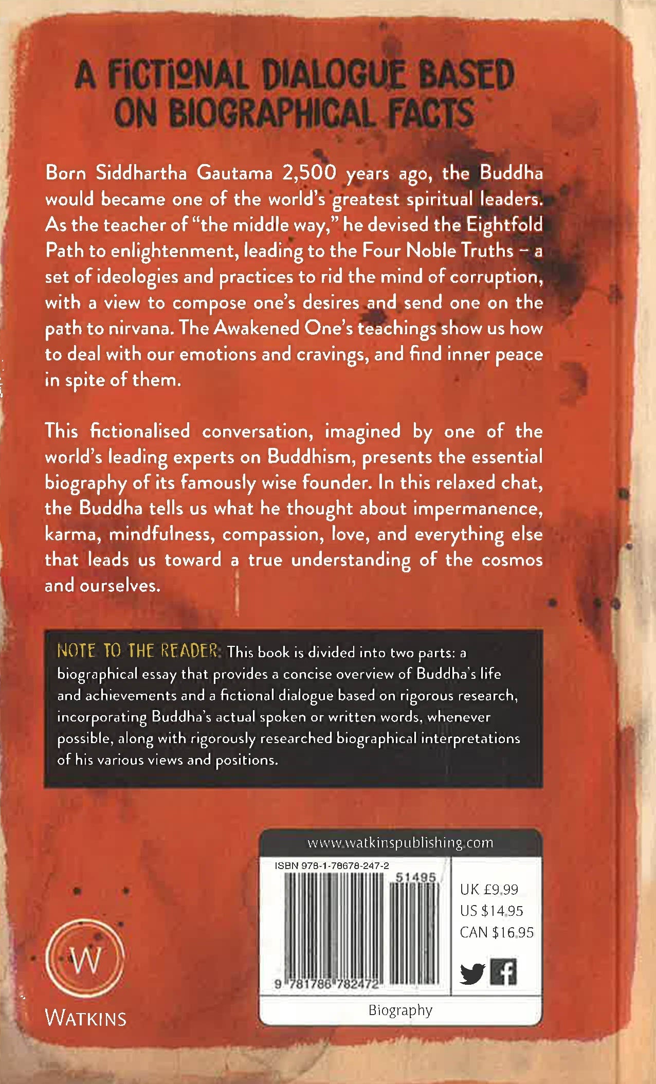 A relaxed chat with the Buddha tells us what he thought about impermanence, karma, mindfulness, compassion, love, and everything else that leads us toward a true understanding of ourselves and the cosmos. We know him as the Buddha, the "Awakened One". Born Siddhartha Gautama 2,500 years ago in northern India, he became one of the world's greatest spiritual leaders. He suffered as we do, then by his own efforts found the key to liberation from the bonds of desire, hatred and ignorance. As Westerners living in relative prosperity, we can identify with this man who had it all - love, success, money, talent, privilege - but set these things aside to search for something deeper and more enduring. This book presents an account of the Buddha's life followed by a series of plausible and illuminating but imagined conversations, which probe all aspects of his philosophy for living. The insights he conveys here offer us practical wisdom for a better life.