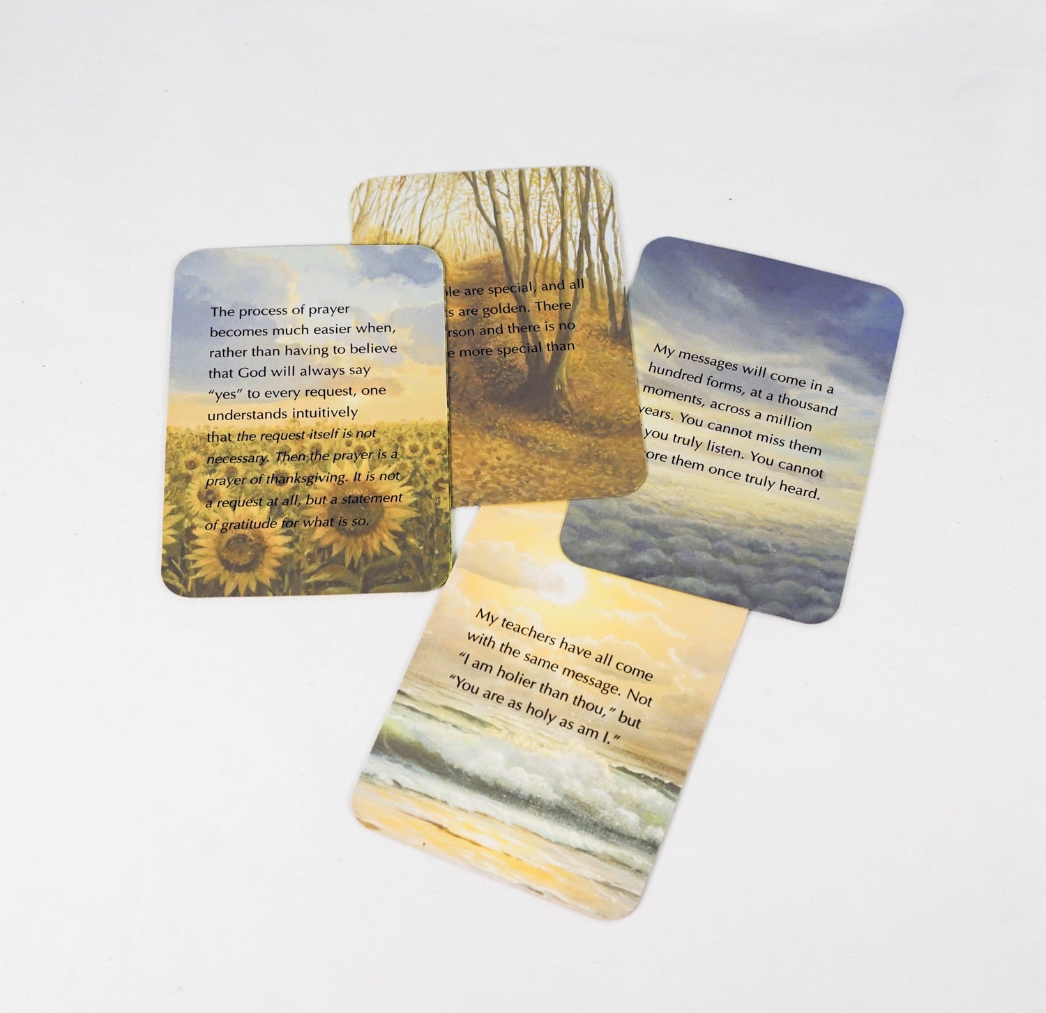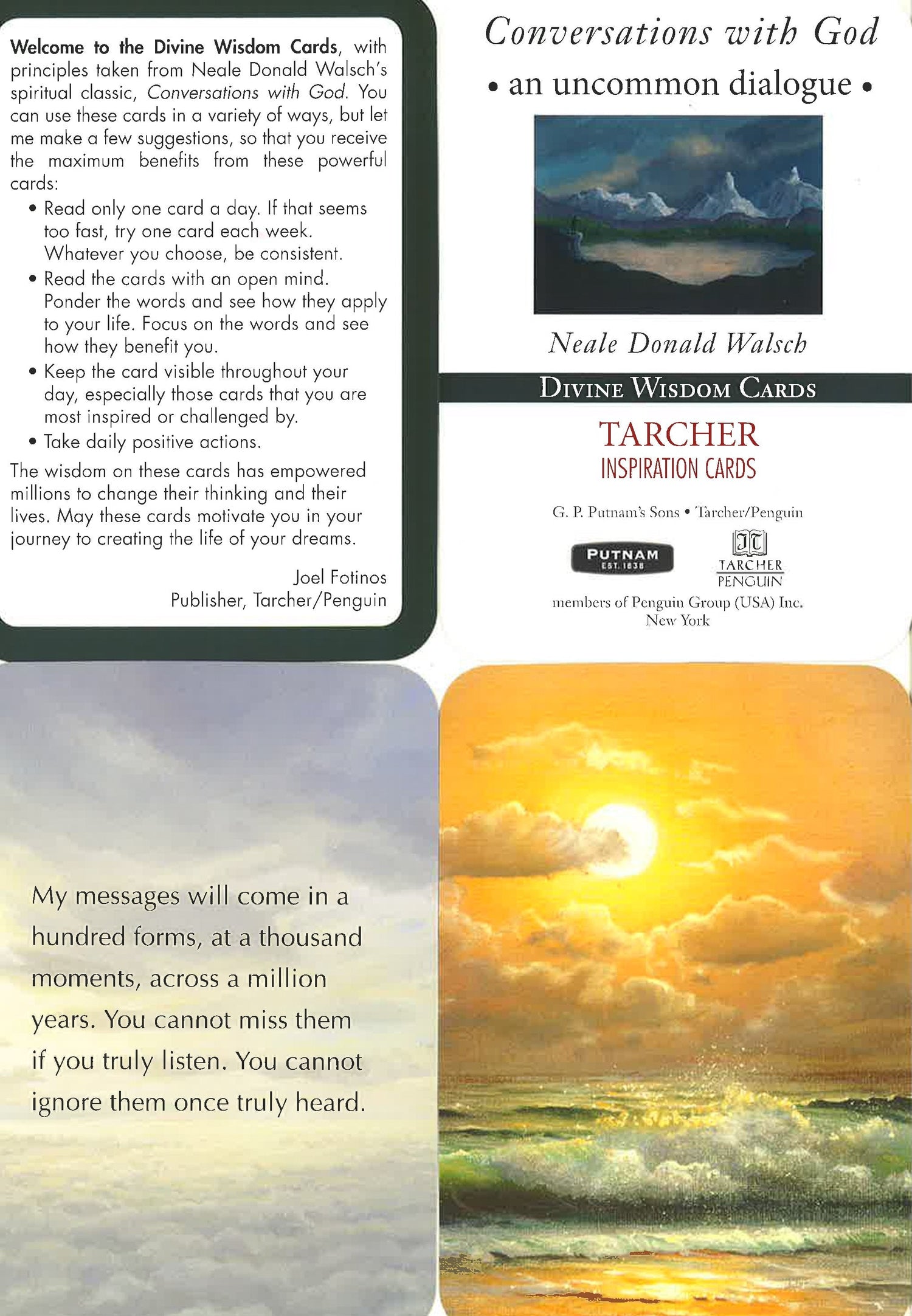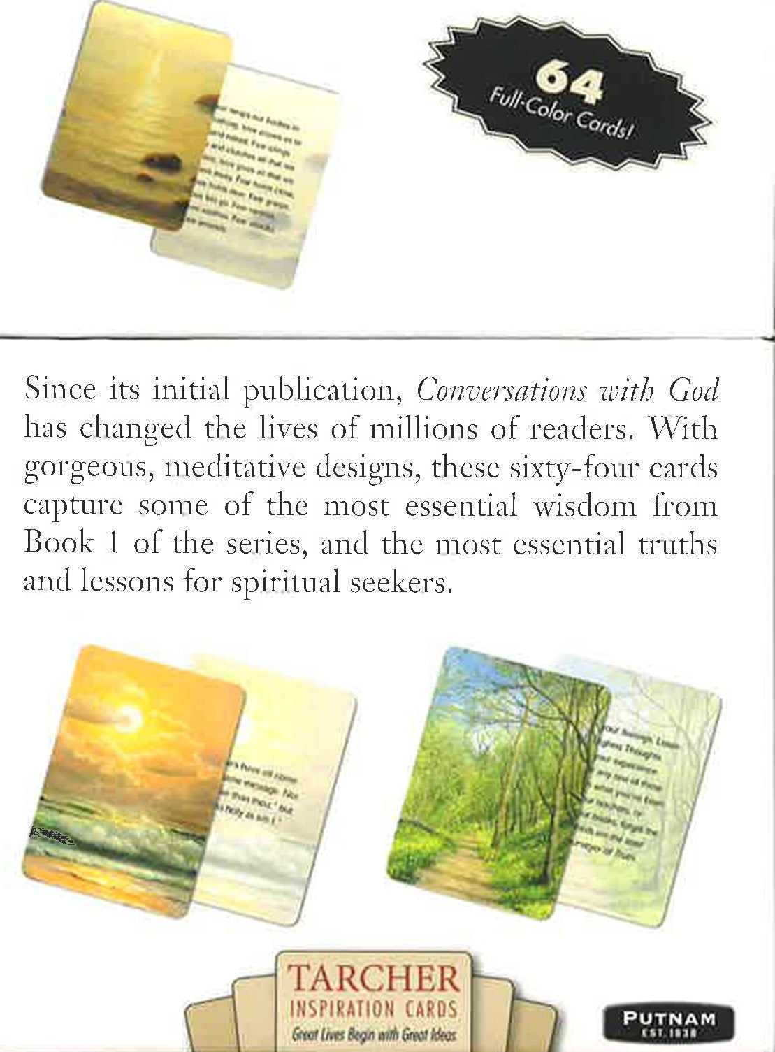 In the fifteen years since its initial publication, Conversations with God has changed the lives of millions of readers. With gorgeous, meditative designs, these 64 cards capture some of the most essential wisdom from Book 1 of the series, and the most essential truths and lessons for spiritual seekers. Winner of the 2014 Nautilus Award represents "Better Books for a Better World"--the Silver Award in the category of Gift/Specialty.