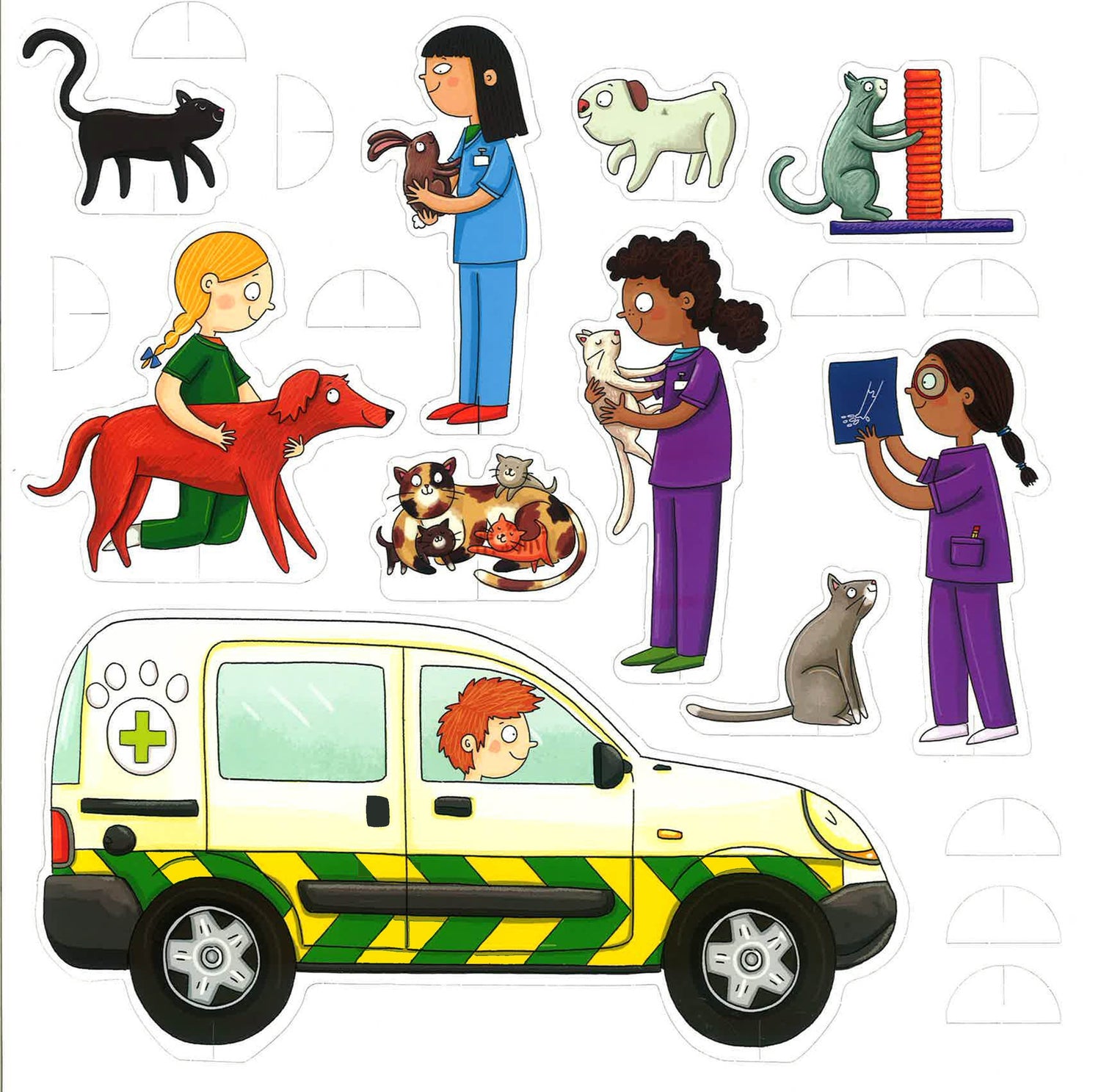 A big, beautiful, highly interactive book that promotes traditional reading skills alongside imaginative play. Children will love finding out about different aspects of a day in the life of a vet in the storybook. Then they can have fun folding out the hospital building and playmat to create their own adventures with the card press-outs.