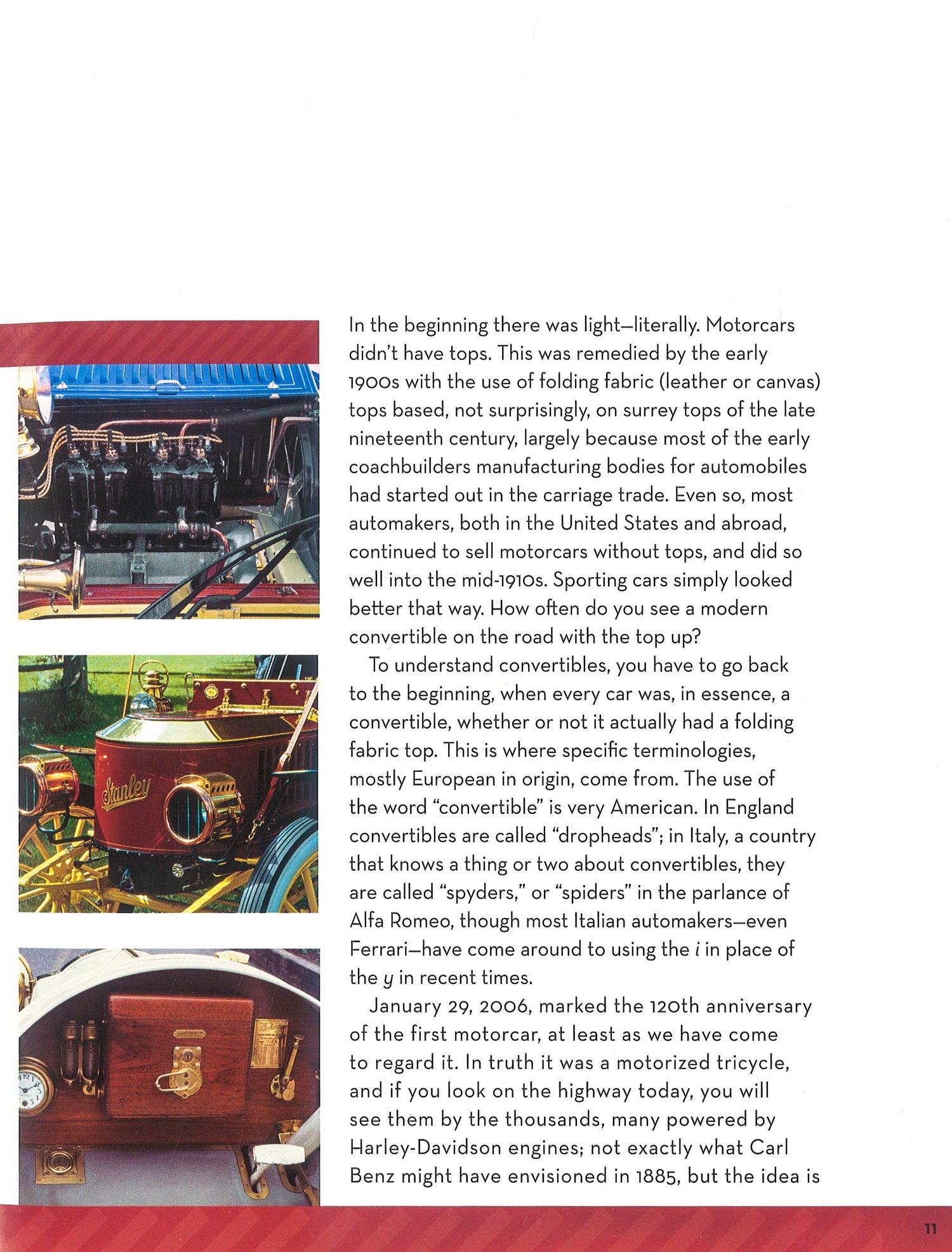 Convertibles is a celebration of the classic drop-top, from the earliest of coach cars where convertible style was the norm, to the high-end sports cars of today. This pictorial journey begins in 1886 with the Benz Patent Motorwagen and races forward through 125 years of automotive development, design innovation, and technology to give every reader a latest convertibles on the market and their historic heritages dating back to a time when every new idea was an innovation, if not a revelation, in modern personal transportation.