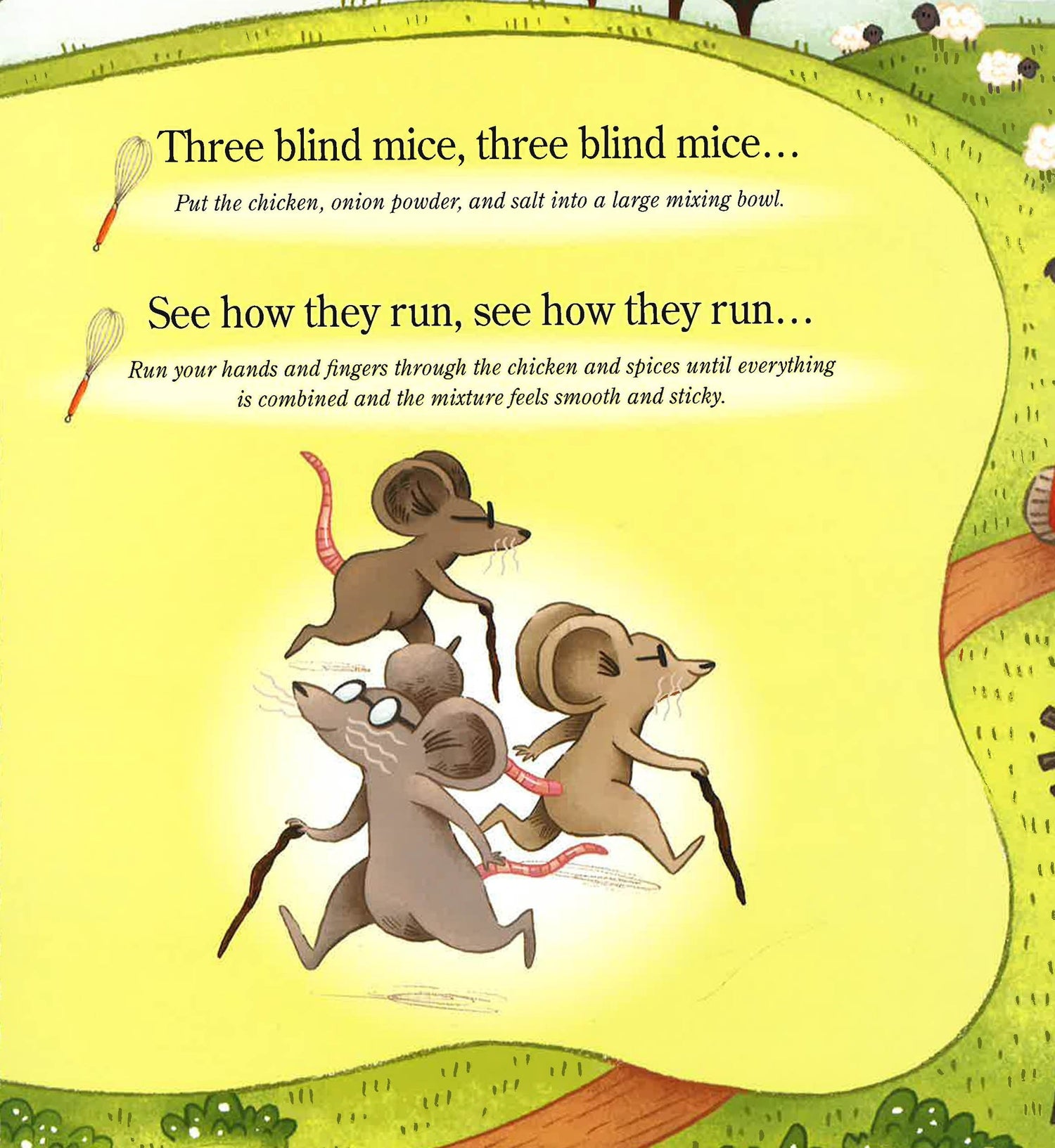 From breakfast to dinner, any time is a perfect time for nursery rhymes and food. Join the fun as children learn to cook with familiar kitchen-time rhymes like "Humpty Dumpty," "Three Blind Mice," "Hickory Dickory Dock," and more.