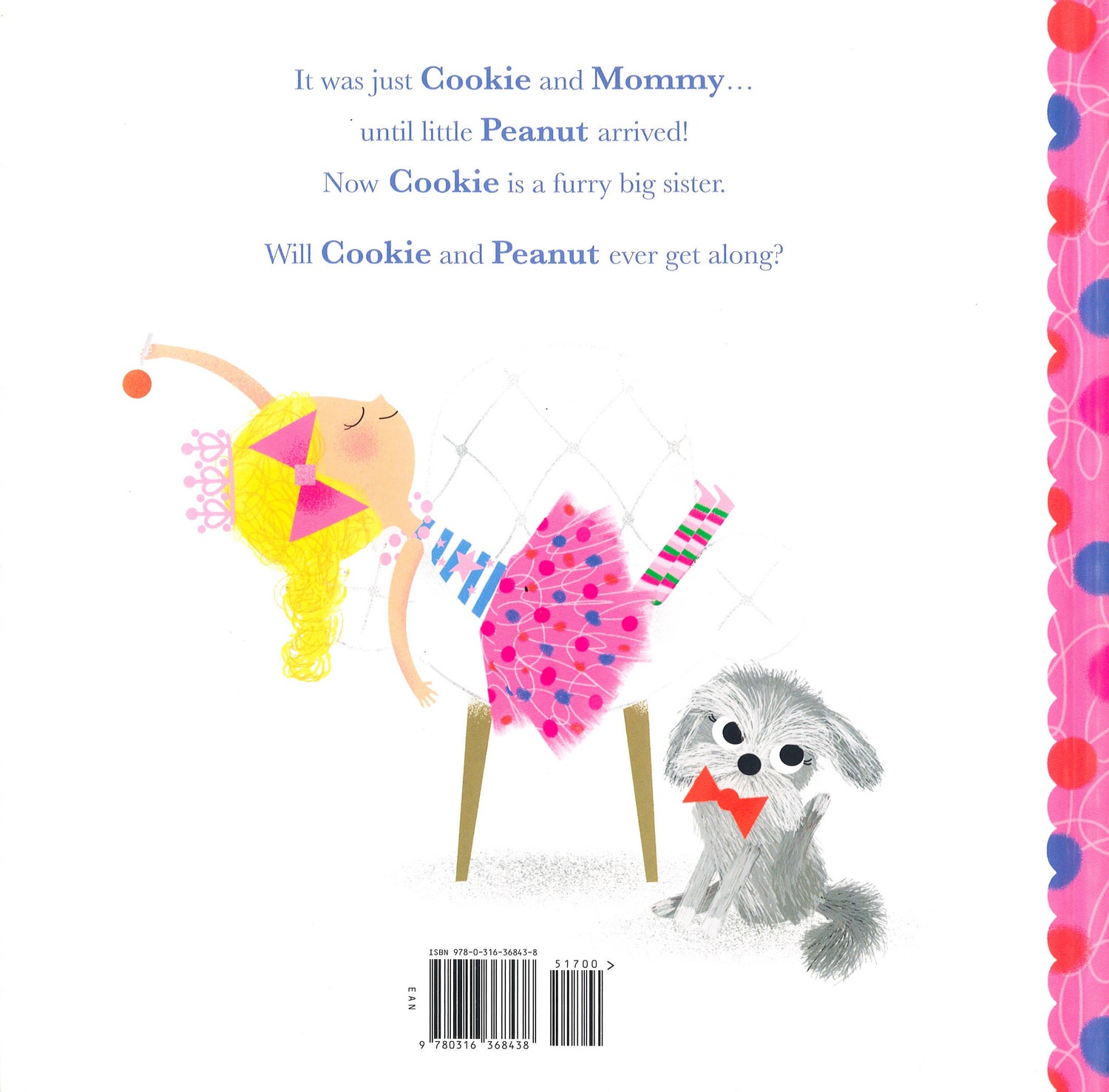 "From self-made businesswoman and mom" BETHENNY FRANKEL: "a story inspired by her own life about two siblings--a new baby and one diva dog."Cookie the dog is Mommy's Furry Baby and everything is just the way Cookie likes it...until one day when Mommy comes home with a real baby! Little "Peanut" is suddenly getting all the attention, and Cookie gets left behind. As Peanut gets older, and walks and talks, Cookie is forced to make room in her doggy life for the little girl. After throwing Mommy a tea party, Cookie and Peanut realize they can have a lot of fun together. Cookie is a furry big sister now!