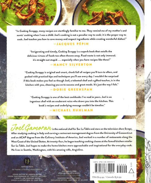 From the food-stoked star of the A&E series Scraps and the National Chef of Sur La Table, a ground-breaking cookbook that reshapes the way you look at ingredients and makes the most out of every resource in the kitchen, featuring 150 color photographs and 100 ingenious recipes that expand your mind, the way you cook, and how you live. Have you ever felt guilty throwing out food? Of course, you have, but that’s all about to change. The stuff you always thought of as trash just became the main course. Look into the fridge. At first glance it might not look like there’s much to eat, just a mishmash of ingredients that don’t go together. But carrot tops can be pesto and brown bananas are the start of an incredible cake. Suddenly you have uncovered an undiscovered treasure chest for making the most out of "nothing." Joel Gamoran dives into the kitchen, changing expectations, not just about how to use all ingredients to their max, but how to make the most of every resource in your kitchen. Flip over that cast-iron skillet for a stellar pizza stone. Don’t throw away those apple cores, shrimp shells, or leftover pickle juice. Transform them into gorgeous meals, such as Apple Core Butter Roasted Duck, Shrimp Shell Chowder, or Pickle Juice Brined Pork Chops. Think outside of the recipe box—learn to be creative when it comes to making food. Resourcefulness is an essential part of cooking; Gamoran’s experiences in culinary schools and as a professional chef have taught him that everything in the kitchen can, and should, be used. His relaxed laid-back tone tackles a serious subject. It embraces a lifestyle that eliminates waste, helps the environment, and enables home cooks to stretch their food budgets. Cooking Scrappy saves you money, helps to save the planet, and ups your cooking game. Joel stands for the bruised, the forgotten, and the back of the fridge. Will you stand with him?!