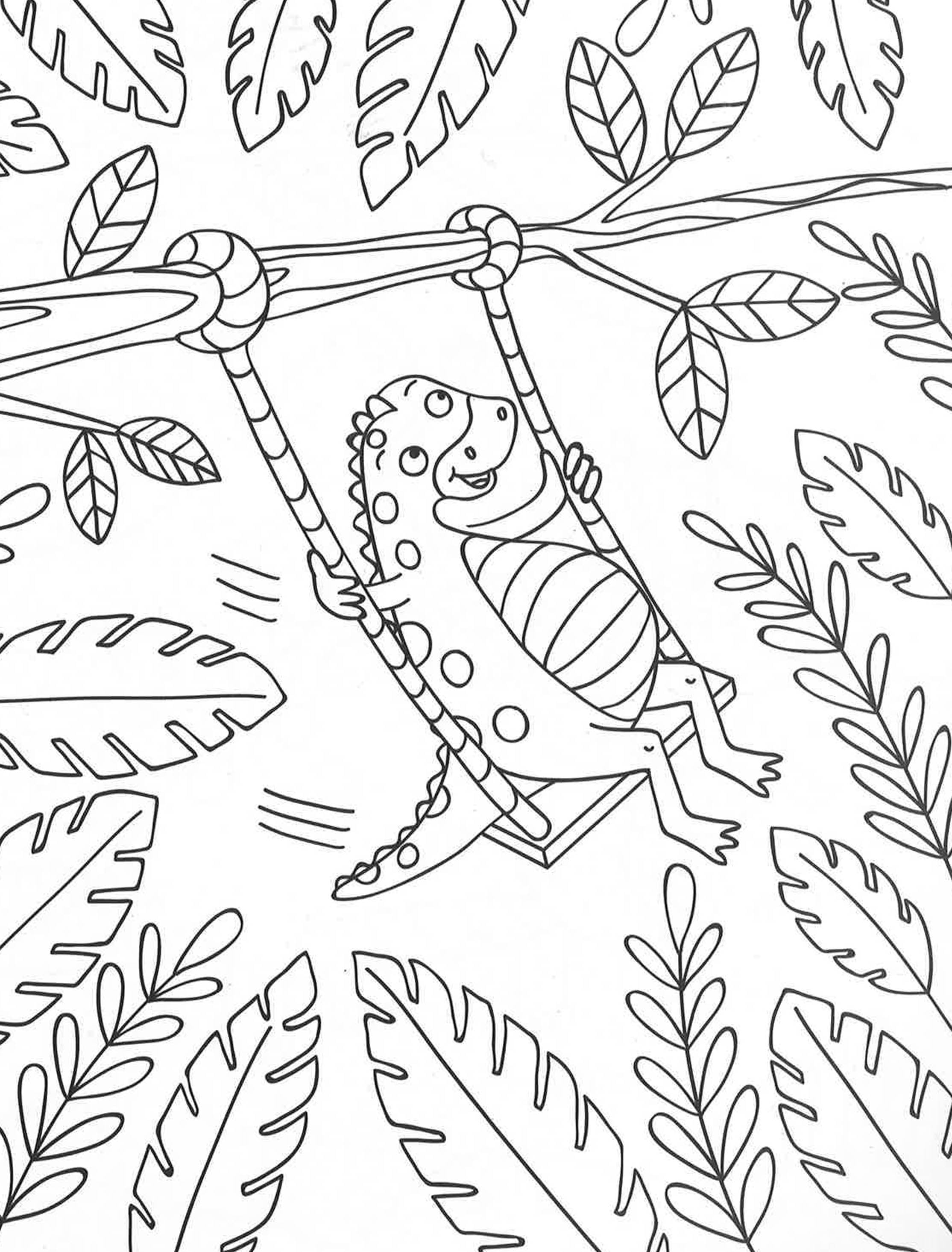 This book is full of dinosaurs doing all kind of things - all that's missing is some colour!