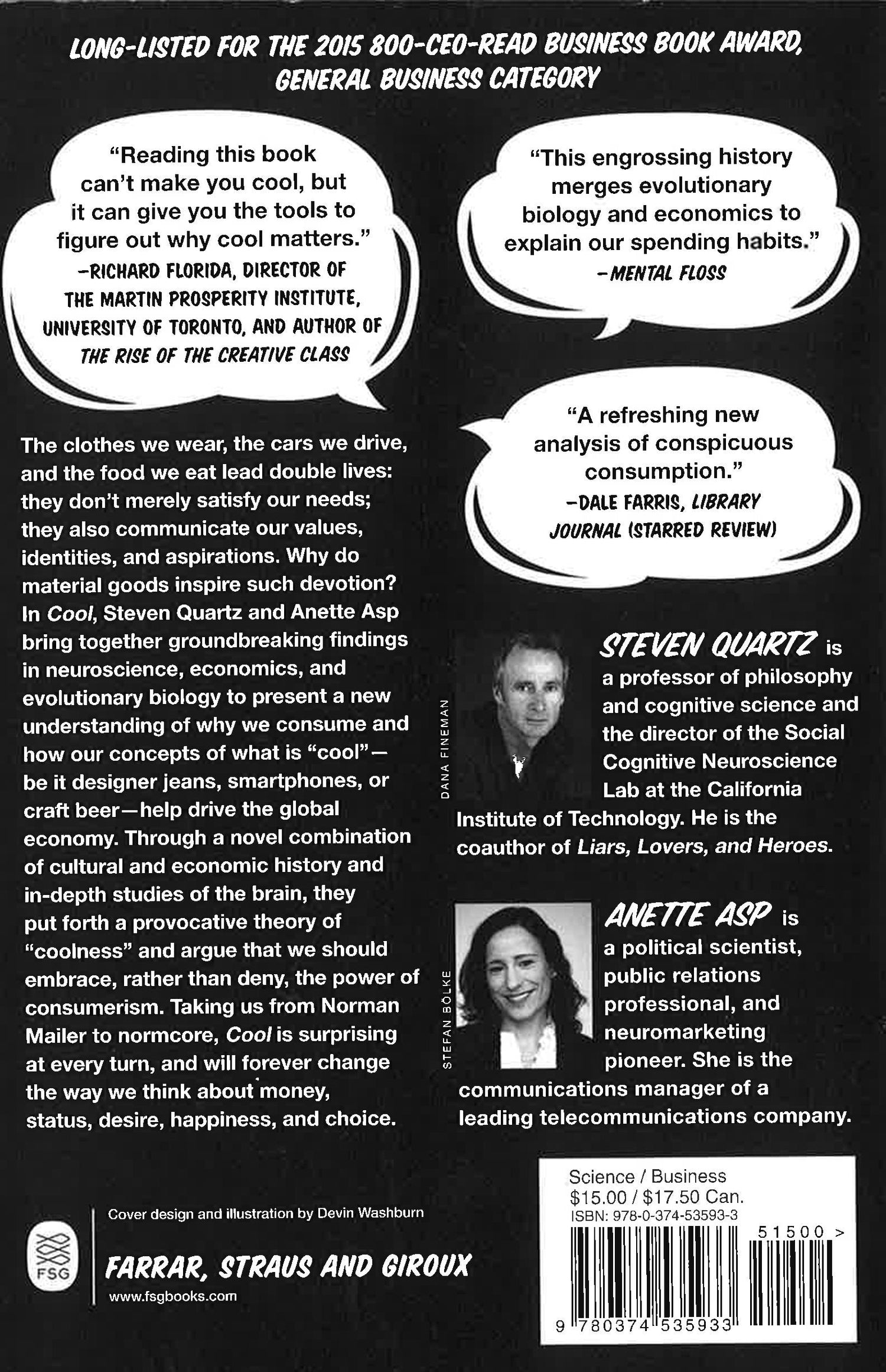If you have ever wondered why SUVs replaced minivans, how one rap song turned the cognac industry upside down, or what gives Levi's jeans their iconic allure, look no further--in Cool, Steven Quartz and Anette Asp finally explain the fascinating science behind unexpected trends and enduring successes.