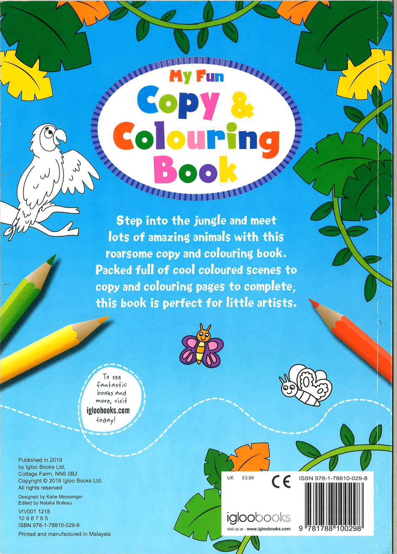 Step into the jungle and meet lots of amazing animals with this roarsome copy and colouring book. Packed full of cool coloured scenes to copy and colouring pages to complete, this book is perfect for little artists.