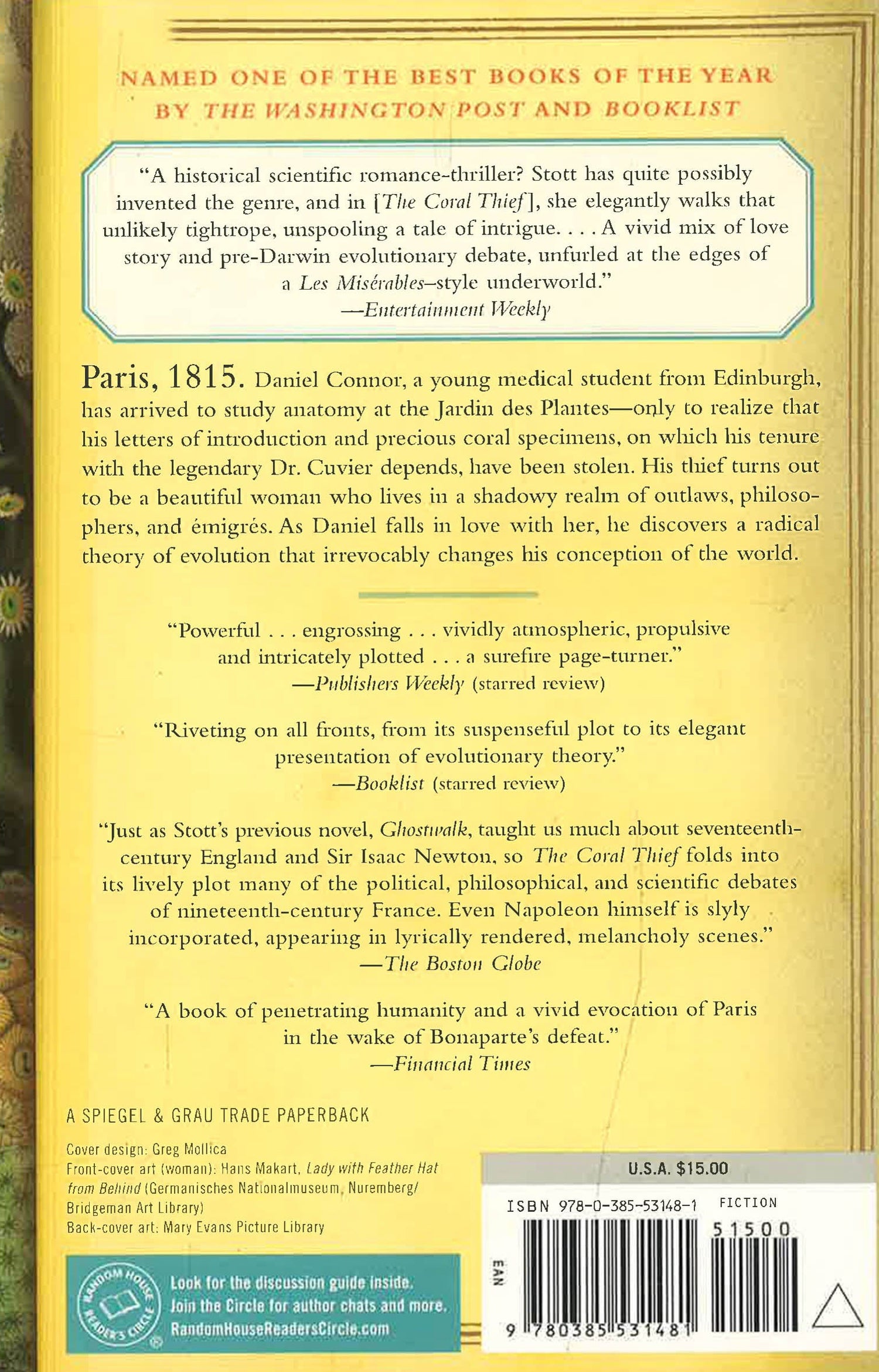 Paris, 1815. Napoleon has just surrendered at Waterloo and is on his way to the island of St. Helena to begin his exile. Meanwhile, Daniel Connor, a young medical student from Edinburgh, has just arrived in Paris to study anatomy at the Jardin des Plantes–only to realize that his letters of introduction and a gift of precious coral specimens, on which his tenure with the legendary Dr. Cuvier depends, have been stolen by the beautiful woman with whom he shared a stagecoach.