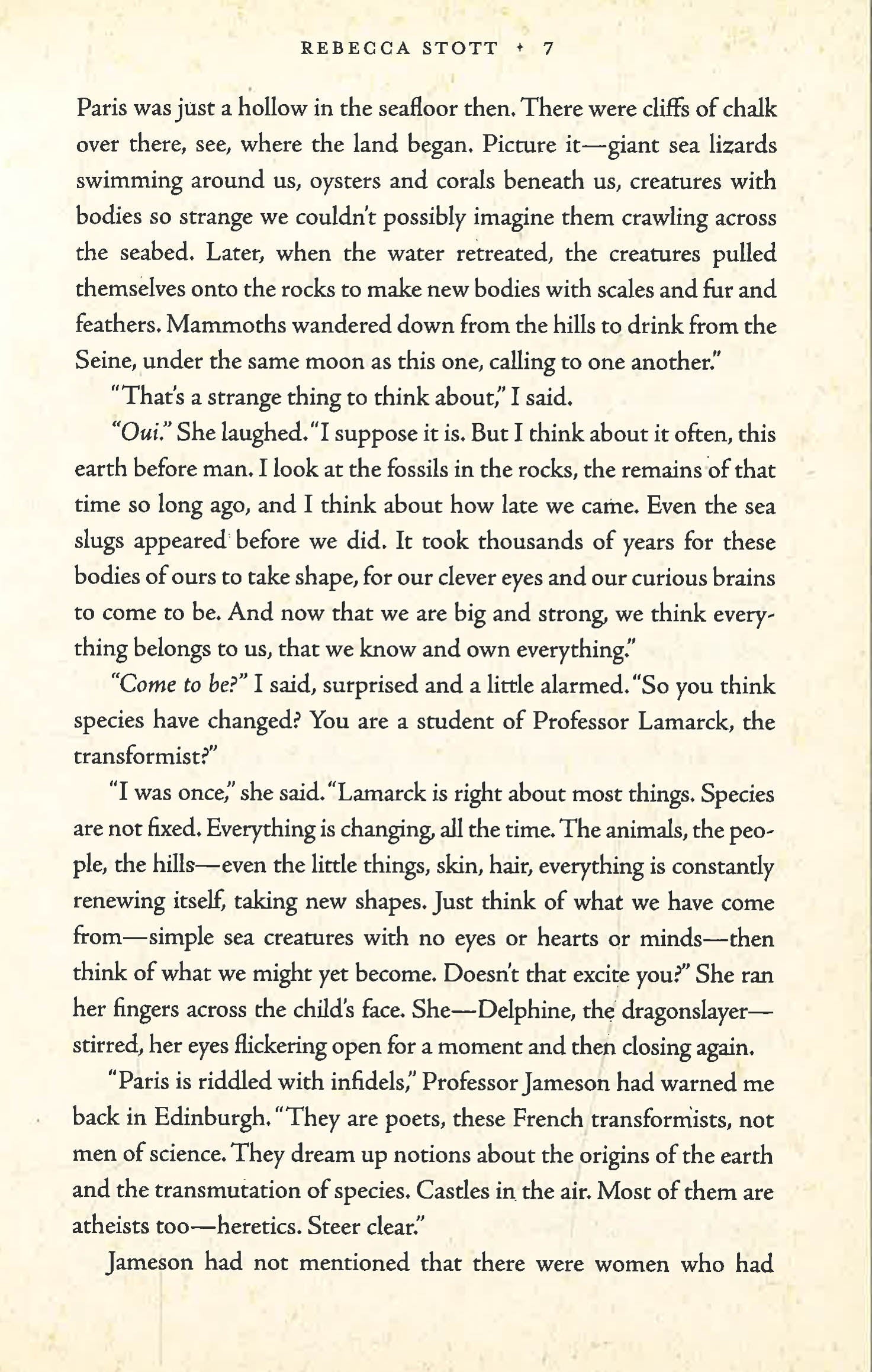 In the fervor and tumult of post revolutionary Paris, nothing is quite as it seems. In trying to recover his lost valuables, Daniel discovers that his beautiful adversary is in fact a philosopher-thief who lives in a shadowy world of outlaws and émigrés. Daniel’s fall into this underworld is also a flight, for as he falls in love with the mysterious coral thief and she draws him into an audacious plot that will leave him with a future very different from the one he has envisioned for himself, Daniel discovers a radical theory of evolution and mutability that irrevocably changes his conception of the world in which he lives.