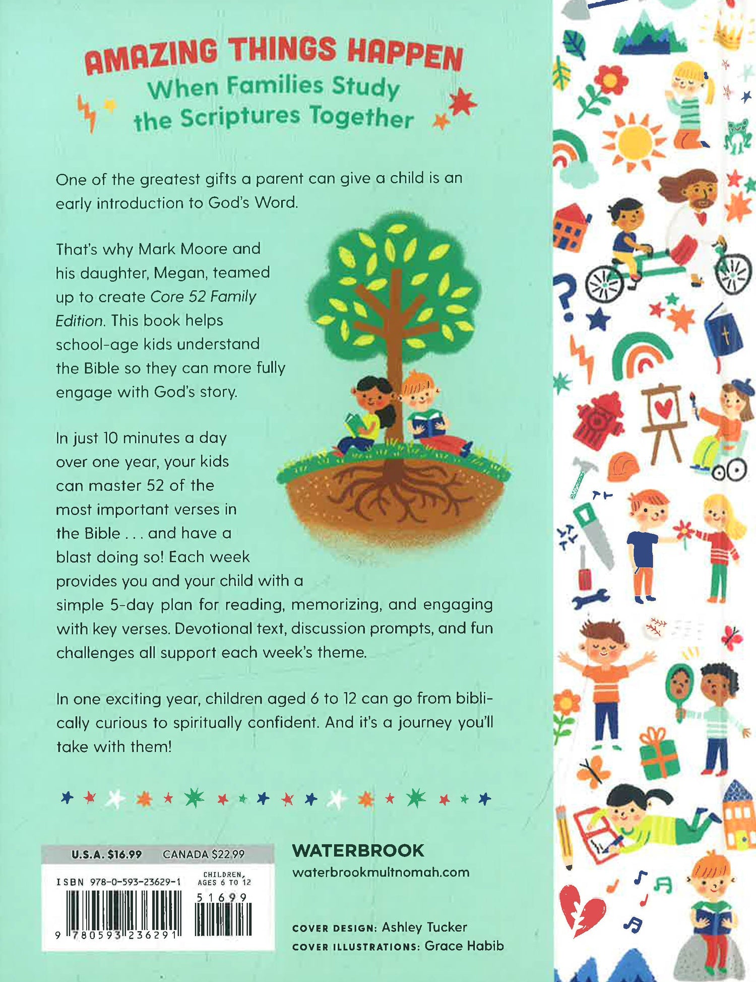 While there are lots of one-year Bible reading plans and family devotionals, few help kids understand the words that they're reading. In this new addition to the popular Core 52 line of resources, Mark E. Moore and his daughter, former teacher and stay-at-home mom Megan Howerton, coach you and your family through 52 of the Bible's key verses.